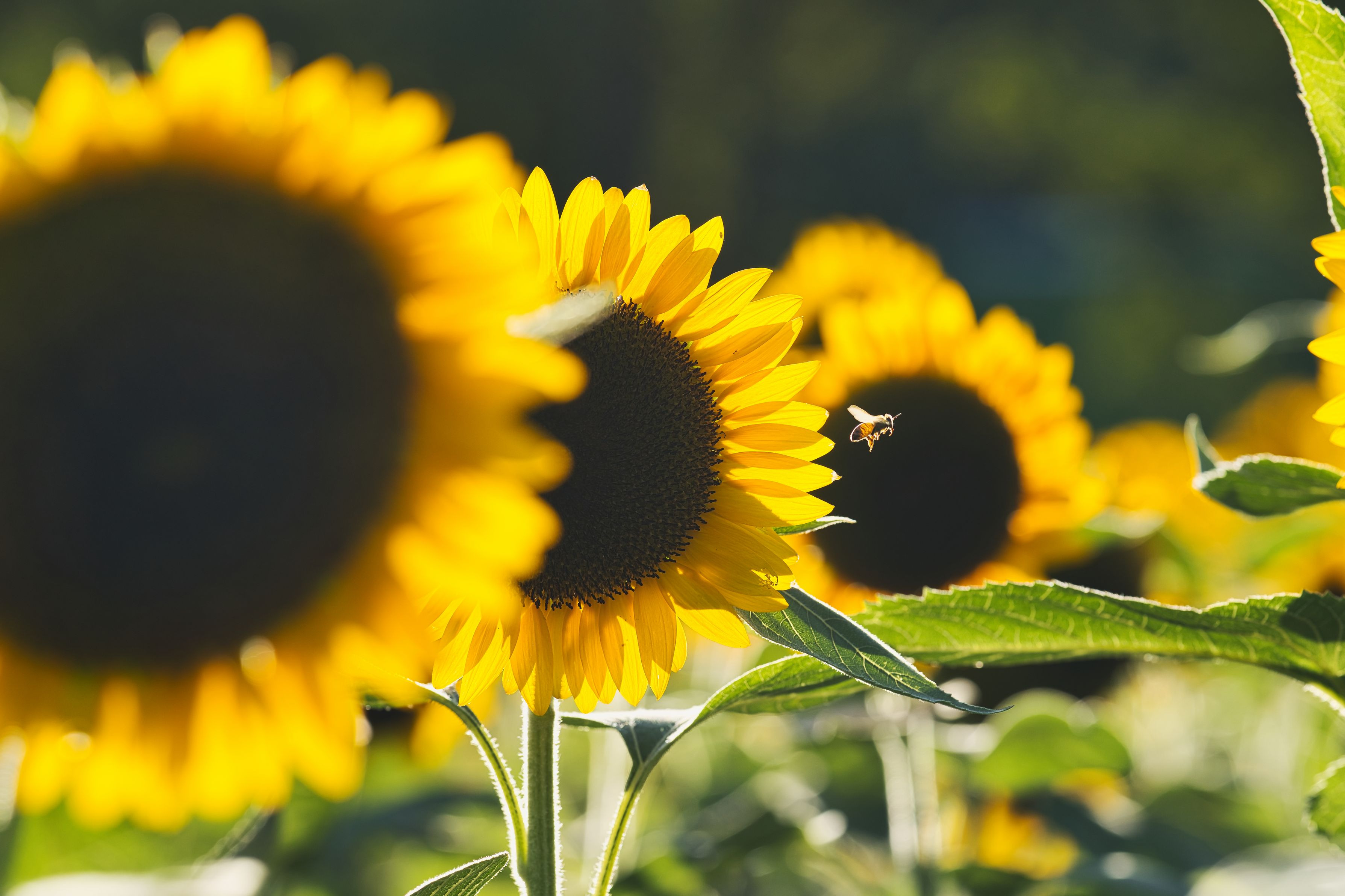製品情報>My Sony>αcafe>夕日を浴びるミツバチと向日葵(masa.ike355さん)