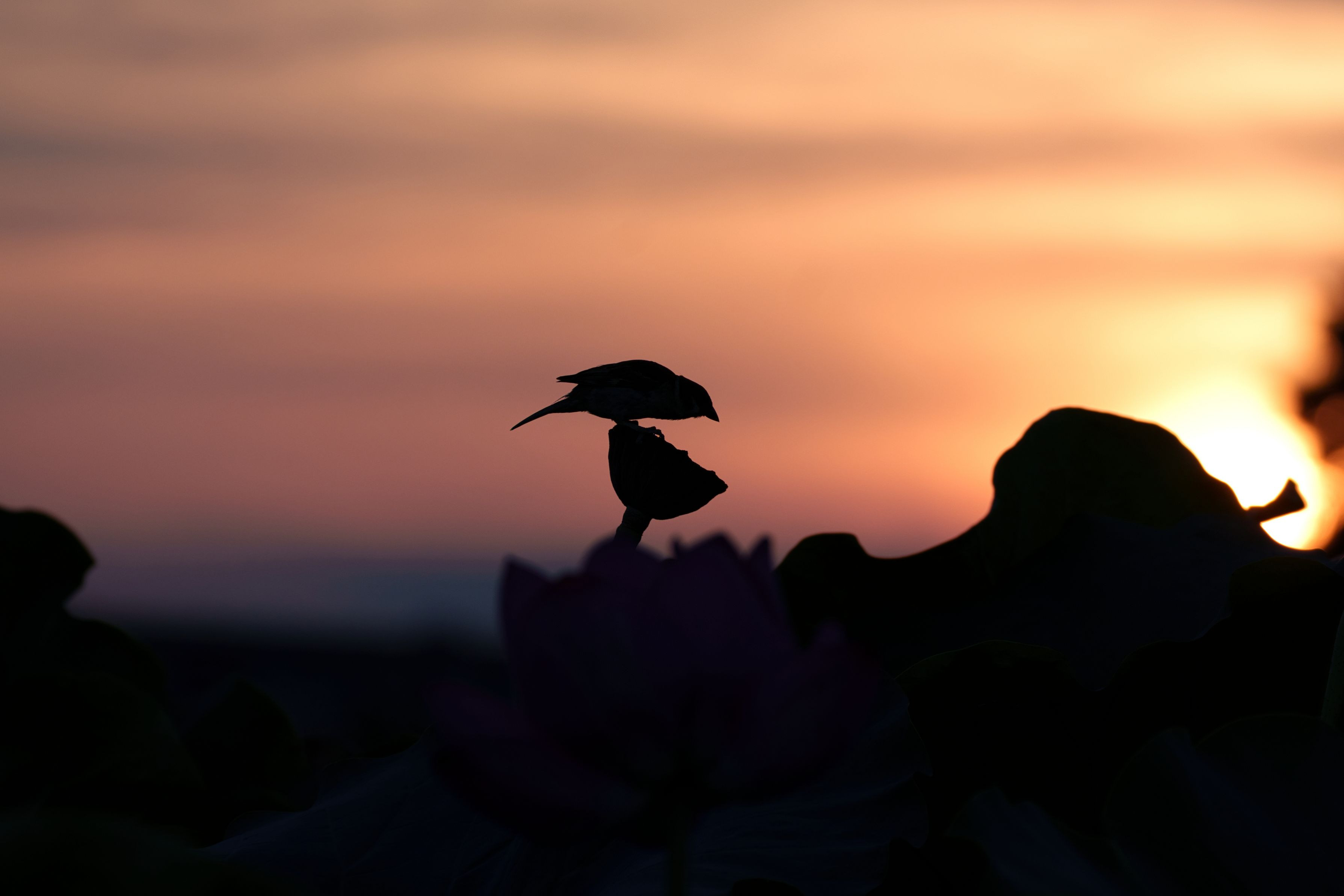 飛び出す用意が出来たスズメ