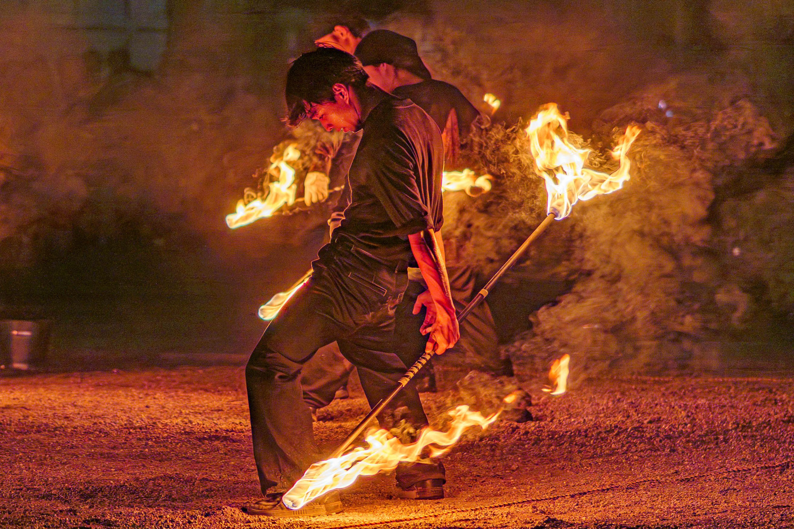 名古屋大須の夏祭りの一コマ。 毎年恒例の高校生による炎のパフォーマンス。暑いなかお疲れ様でした。