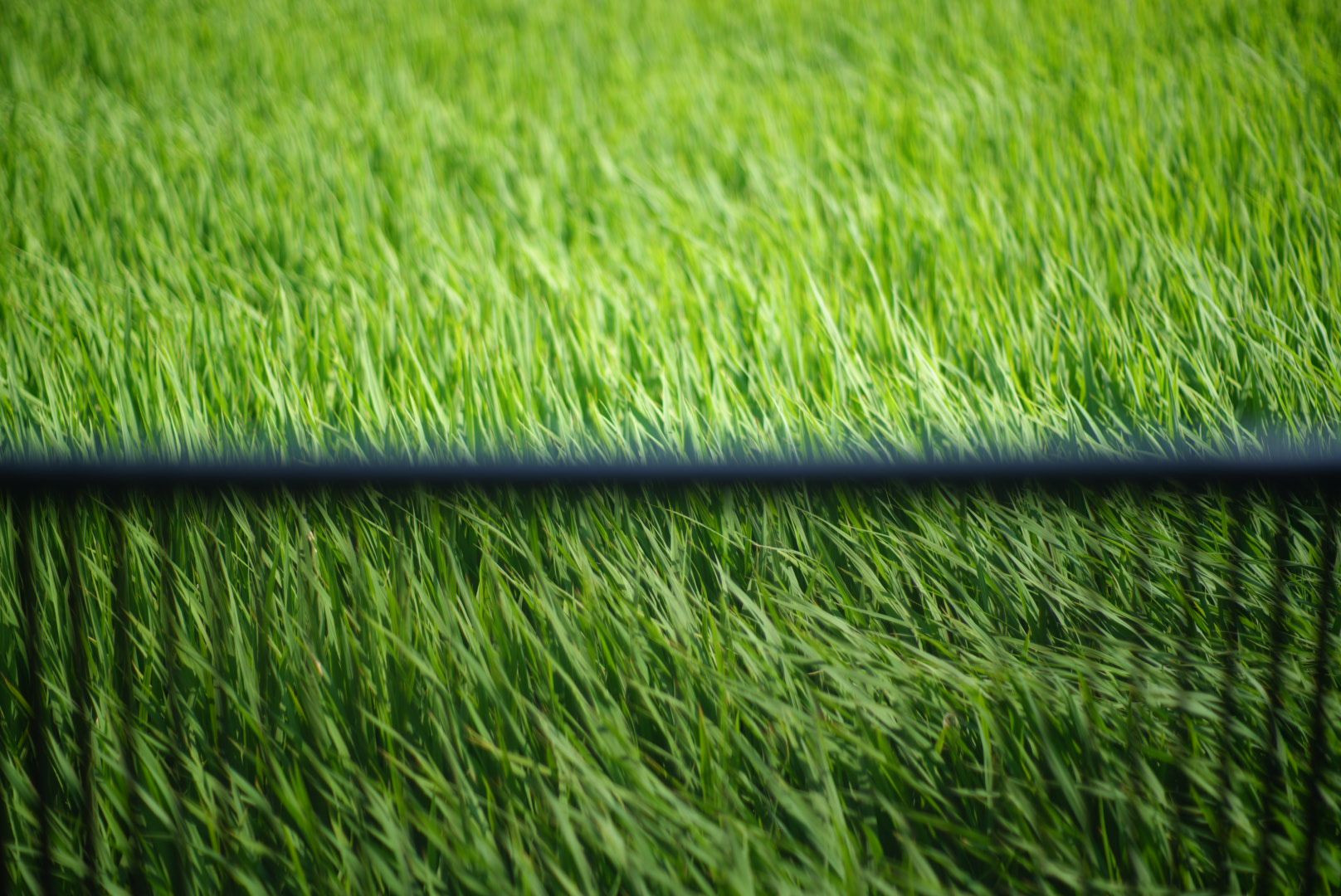 田んぼを撮影しましたが、なぜか黒い柵のラインが消えてしまいました。 原因はよくわかりませんがイネが動くと光が乱反射して黒い柵が消えたように写るのではないかと思われます。 80mm F1.4 がマニュアル撮影しました。