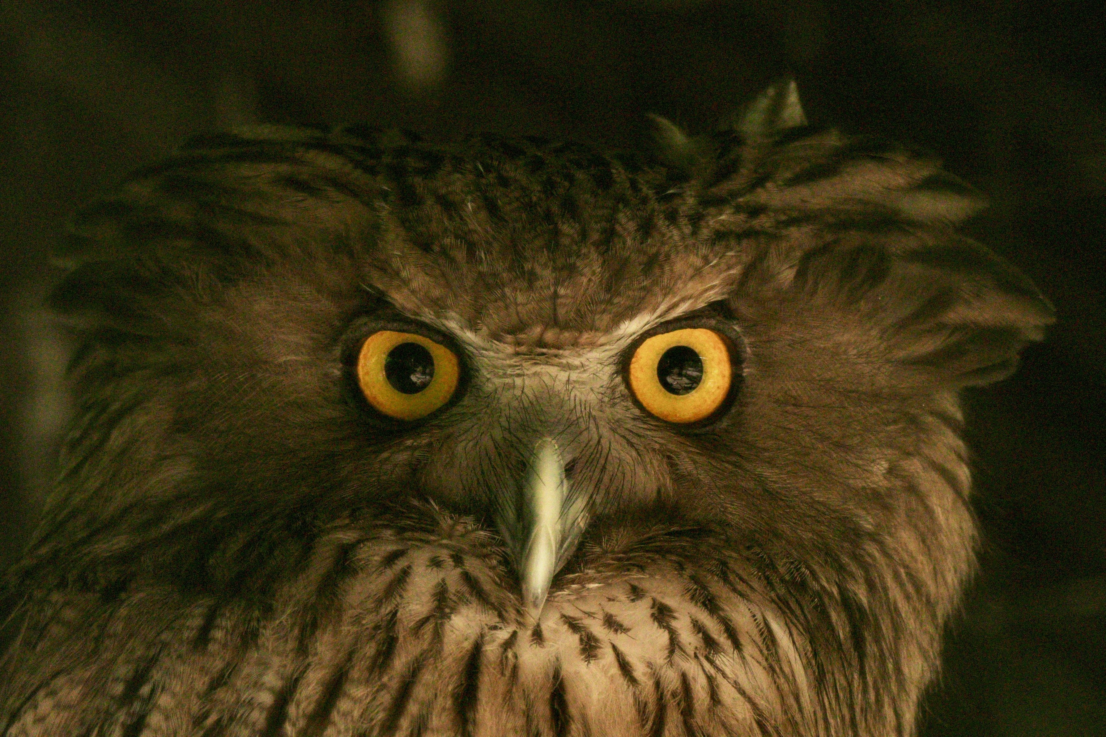 シマフクロウの目力、真正面から
