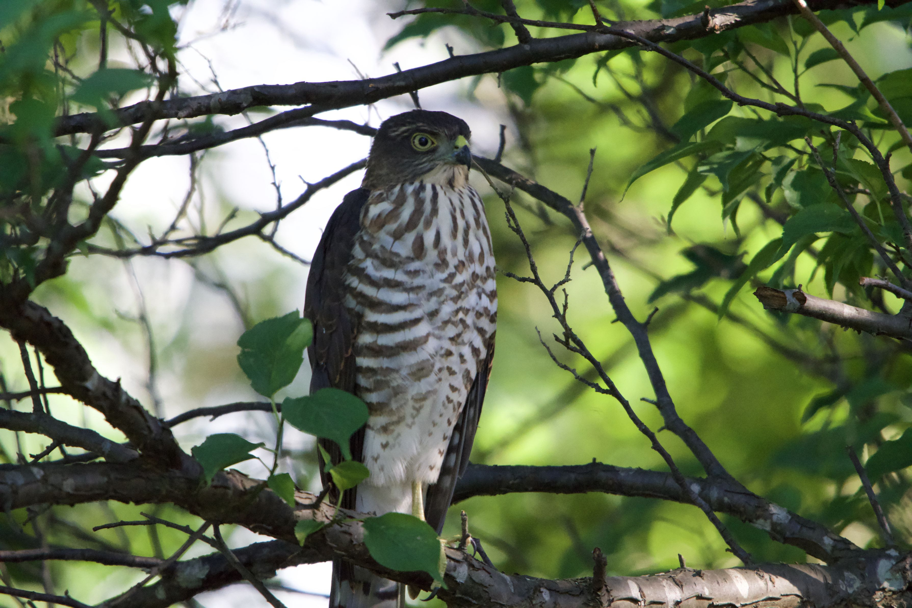 公園の木の枝に静かに止まっていたハイタカ。初めて見る珍客。