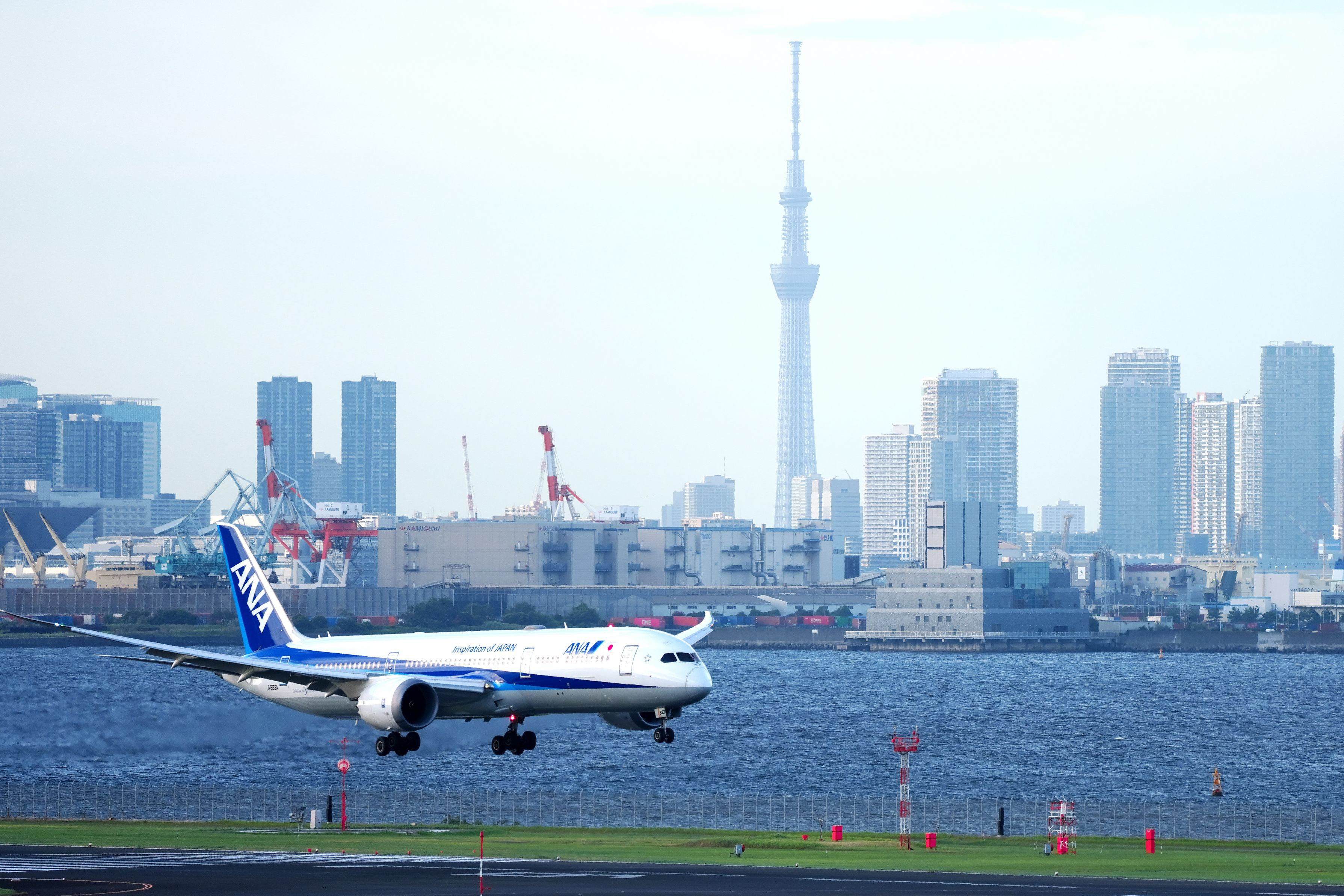 スーパームーンが見守るANA機の着陸進入