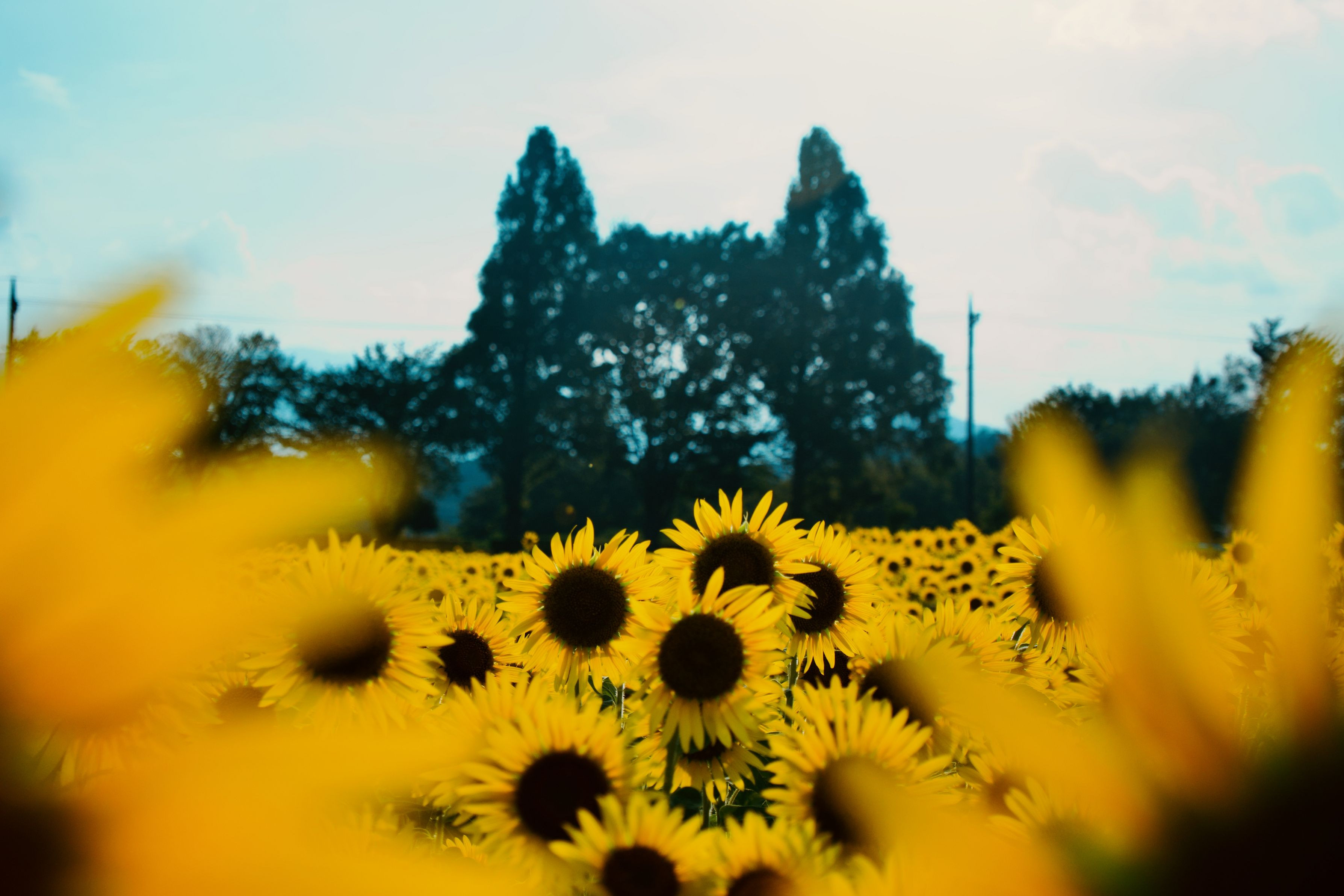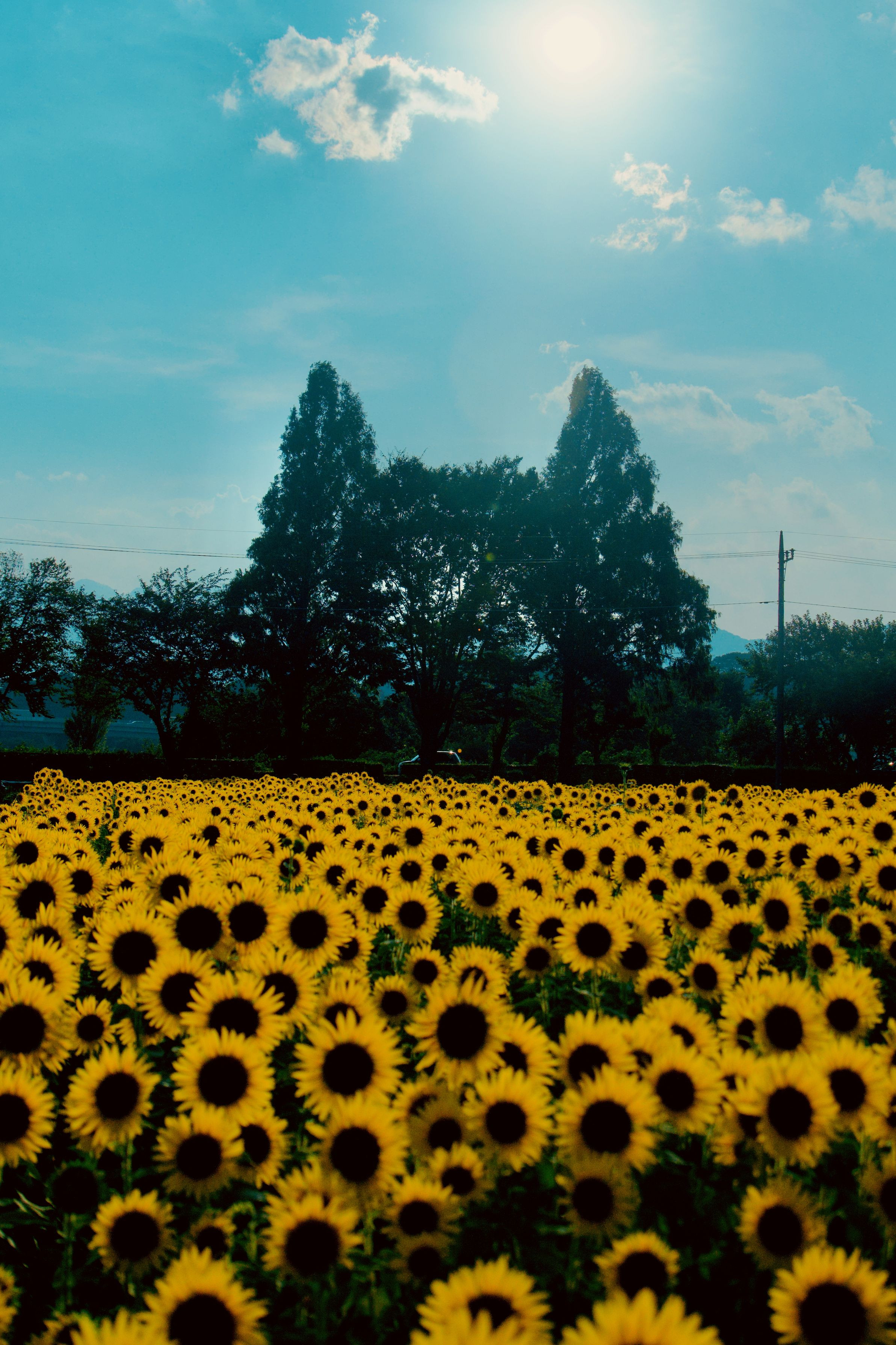 ひまわり畑の向こうにネコが・・・