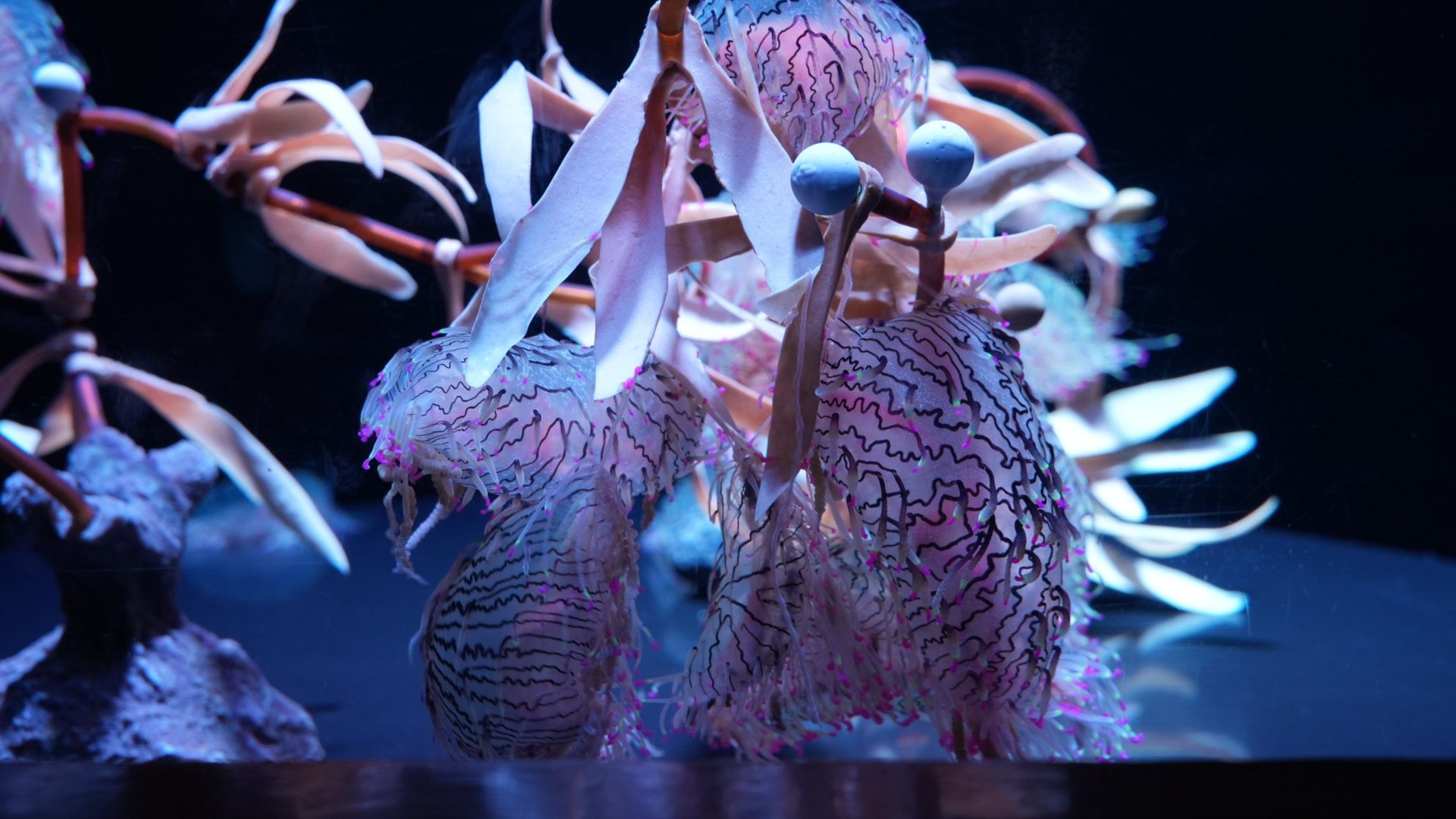 不思議な色のクラゲに出逢いました。見る人によっては気持ち悪いかも…。もっと寄って単体を撮った方が良かったのかも…。