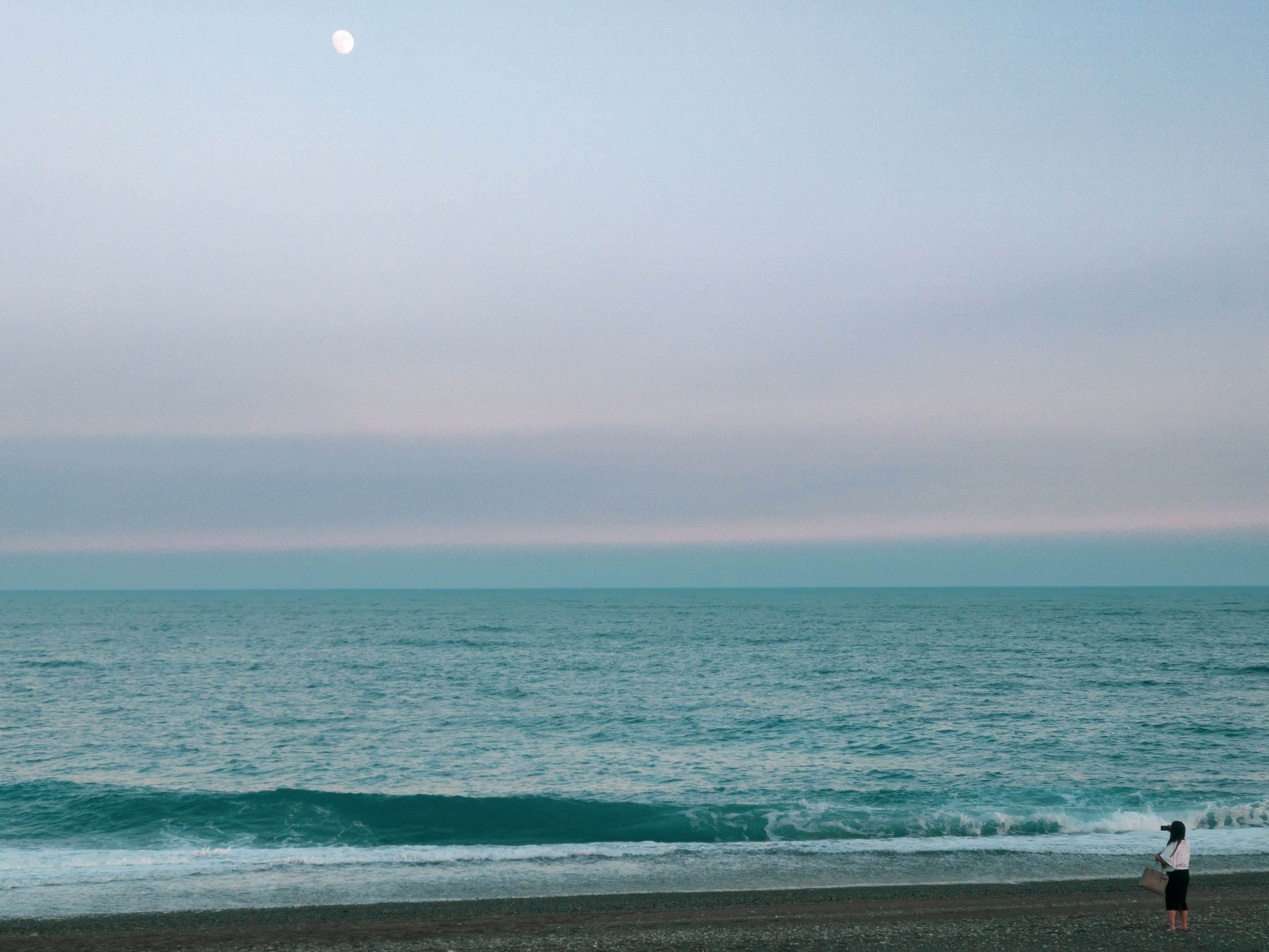 波打ち際で自撮りしている女性が印象的でした