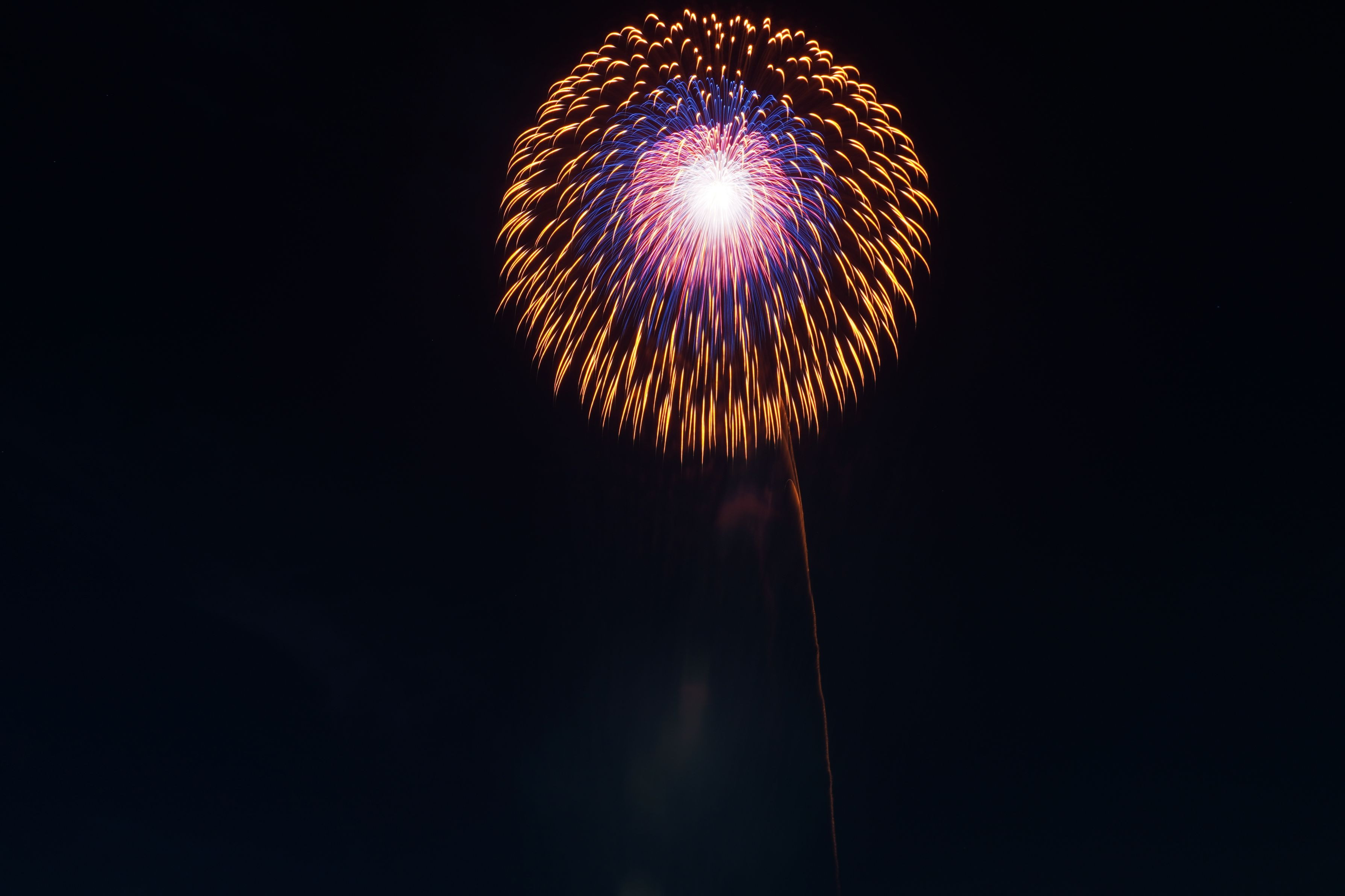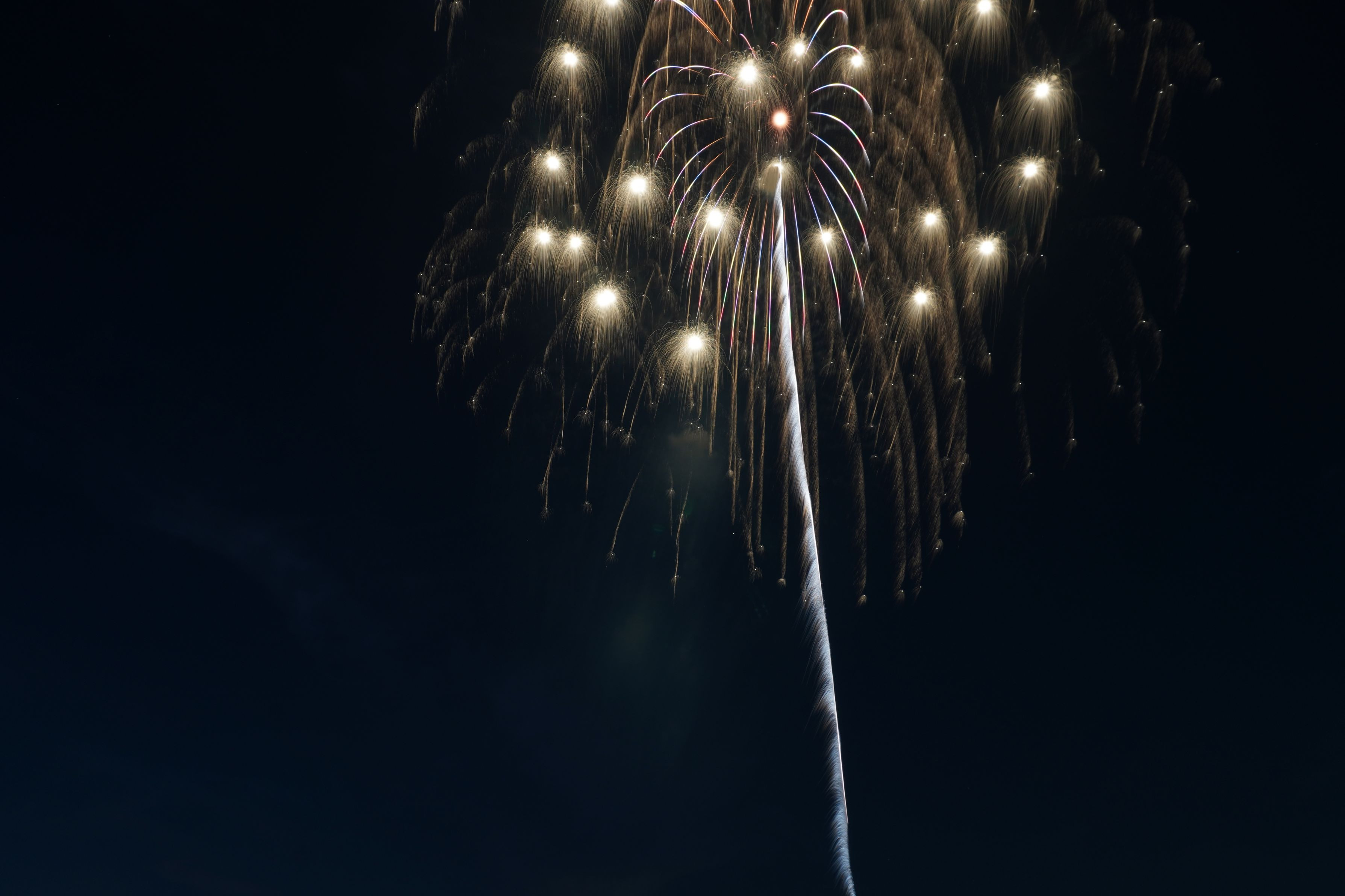 6 『昇曲導 三重芯銀点滅』 山﨑 智弘(茨城) 曲導(くねる軌道)で上昇し、三重芯が銀点滅で炸裂。動きと輝きの融合。