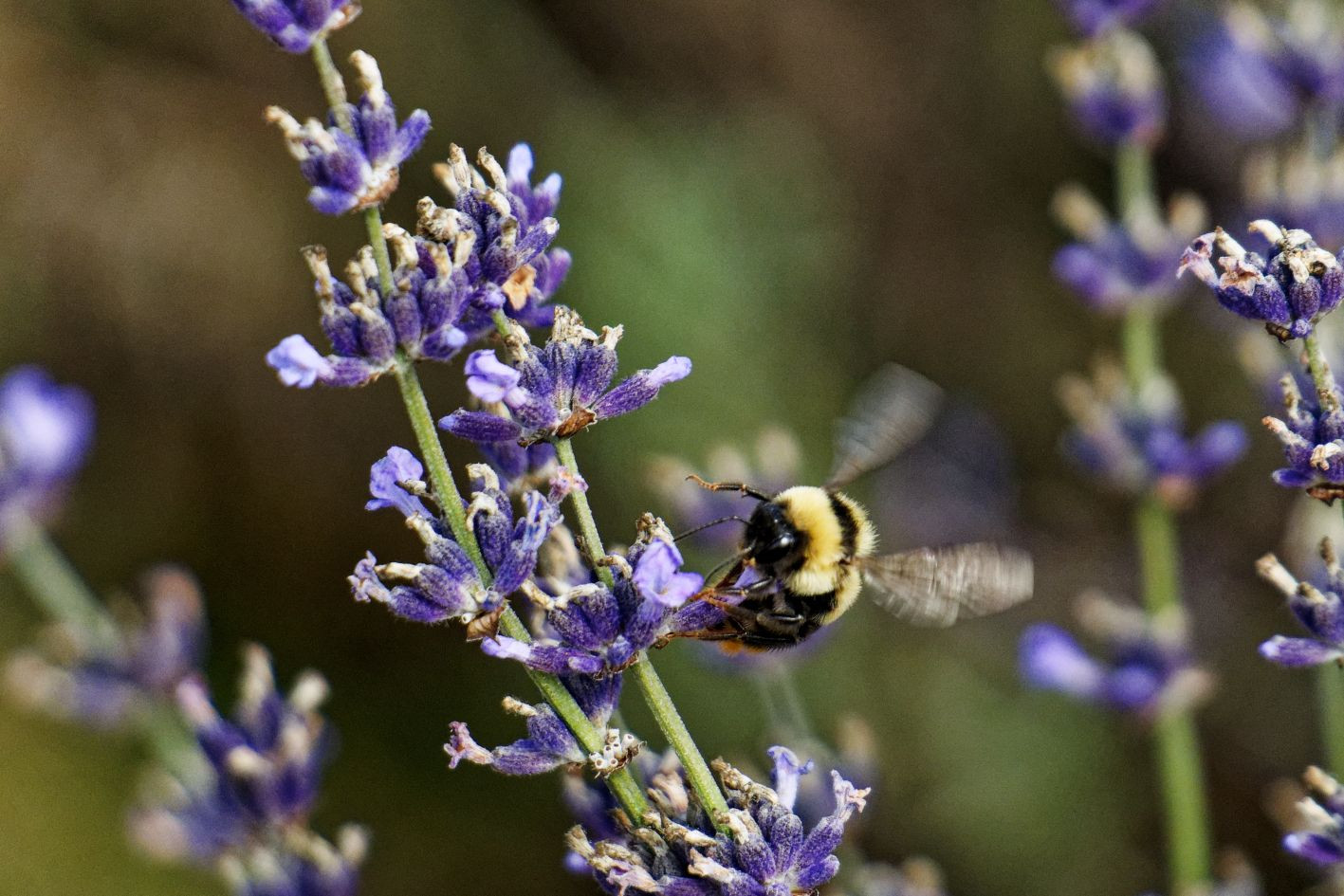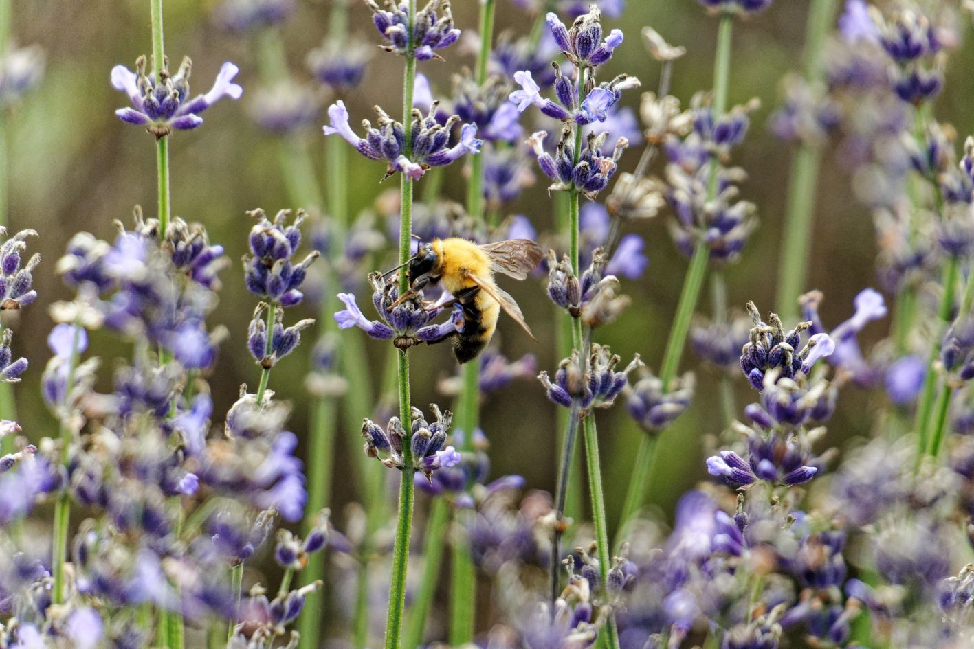 猛暑を避けて標高1300mのラベンダー園へ 高原を吹き抜ける爽風に、撮影も快調 ミツバチたちも忙しそうに花から花へ飛んでいました。