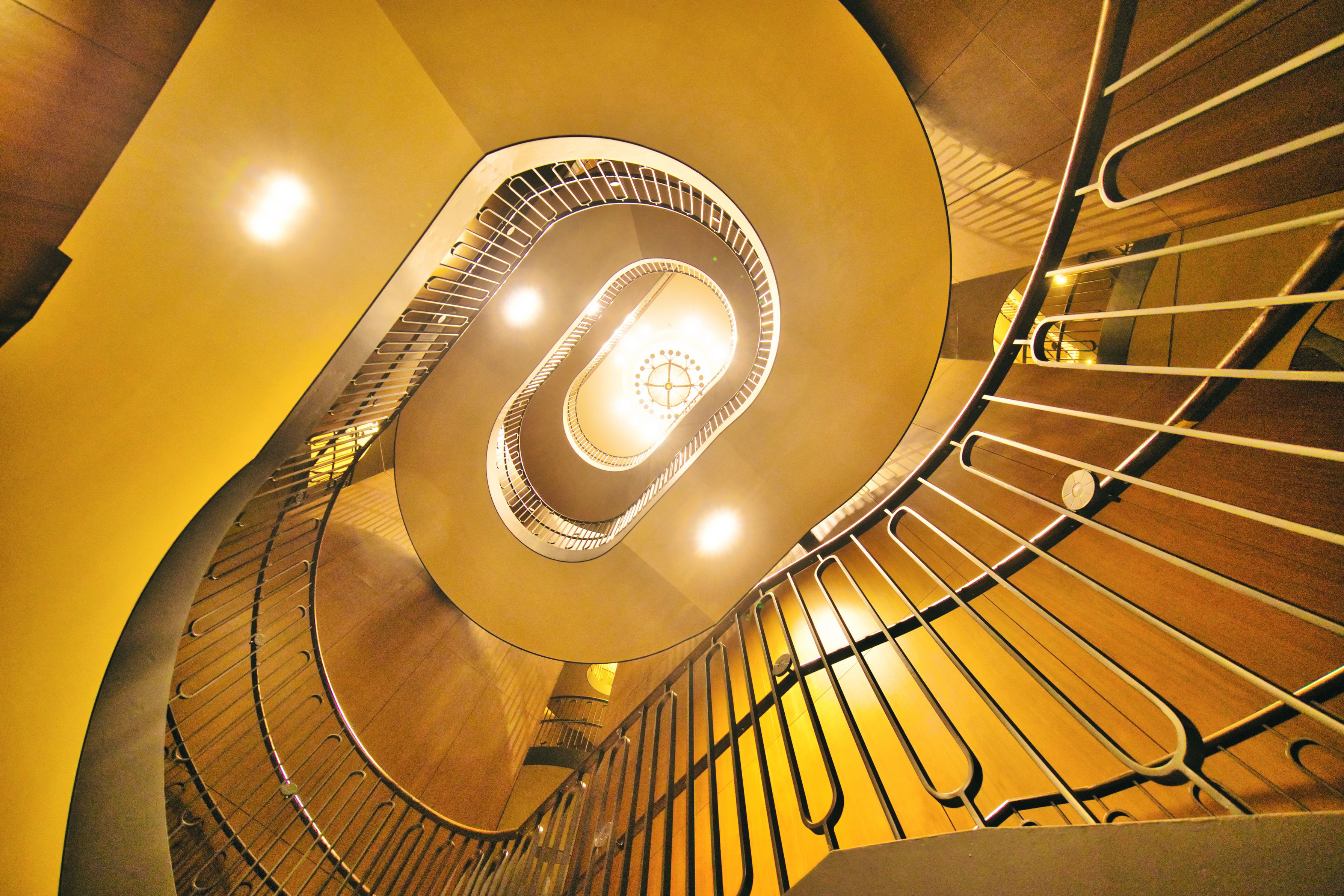 東京會舘:丸の内二重橋ビル シックな色使いと楕円形の曲線がとても美しい 螺旋階段を下から見上げて・・ #東京都#