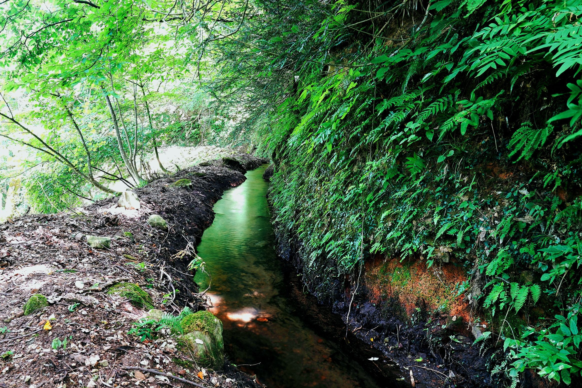 天空の棚田の水源を訪ねて。 天空の棚田には上流の渓流から山肌を縫うように流れる用水路がつながる。 江戸時代末期の完成。約160年間、流れ続ける。