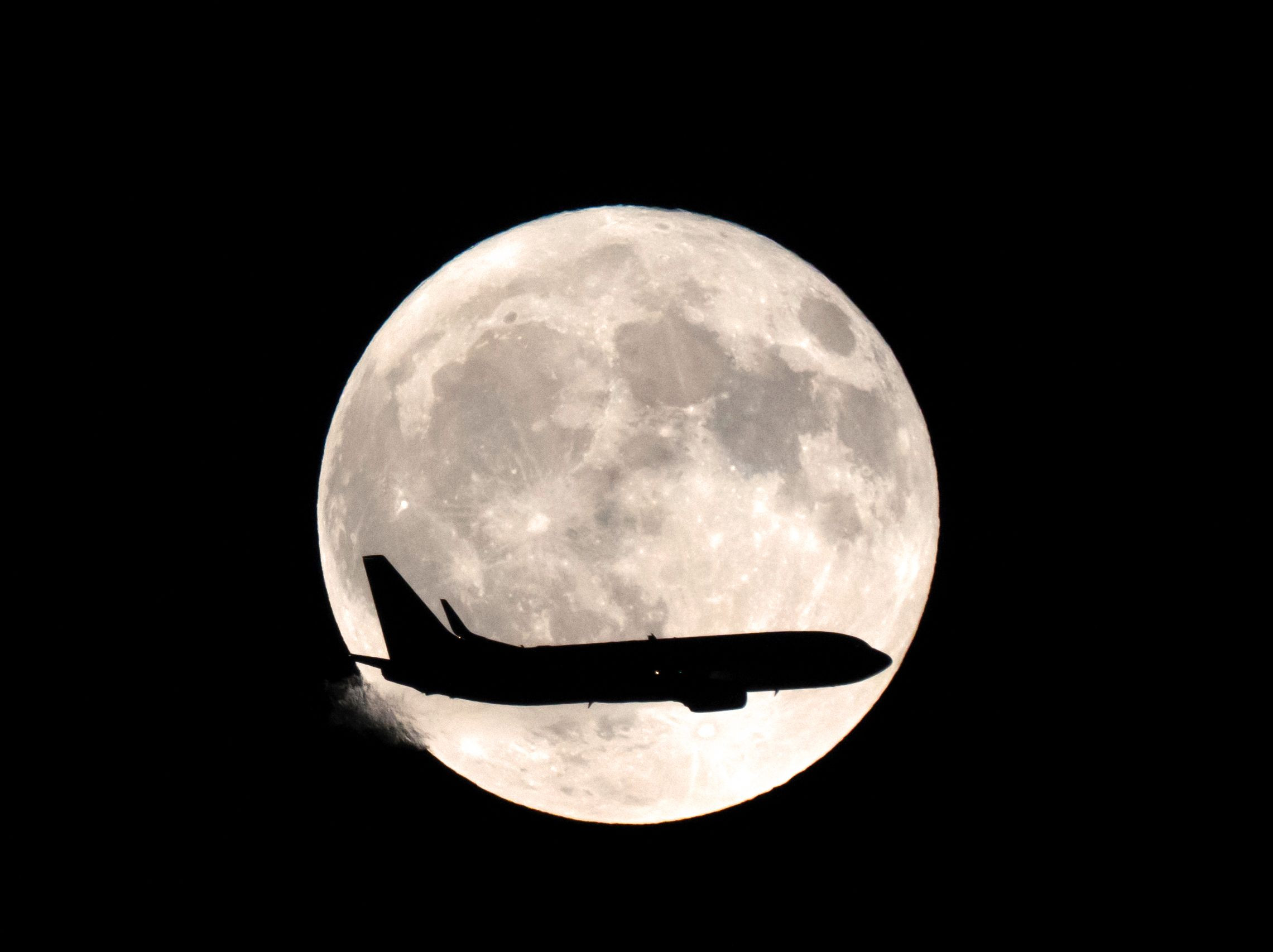 雲間から姿を現した8月の満月。羽田空港を離陸した福岡行きスカイマーク最終便(SKY027)が月とクロス。幸運にも、機種が小さめのBoeing737 で、月の中にジャスト・サイズで入りました。FE 100-400mm F4.5-5.6 GM OSS + 2X Teleconverter 使用、トリミングあり。