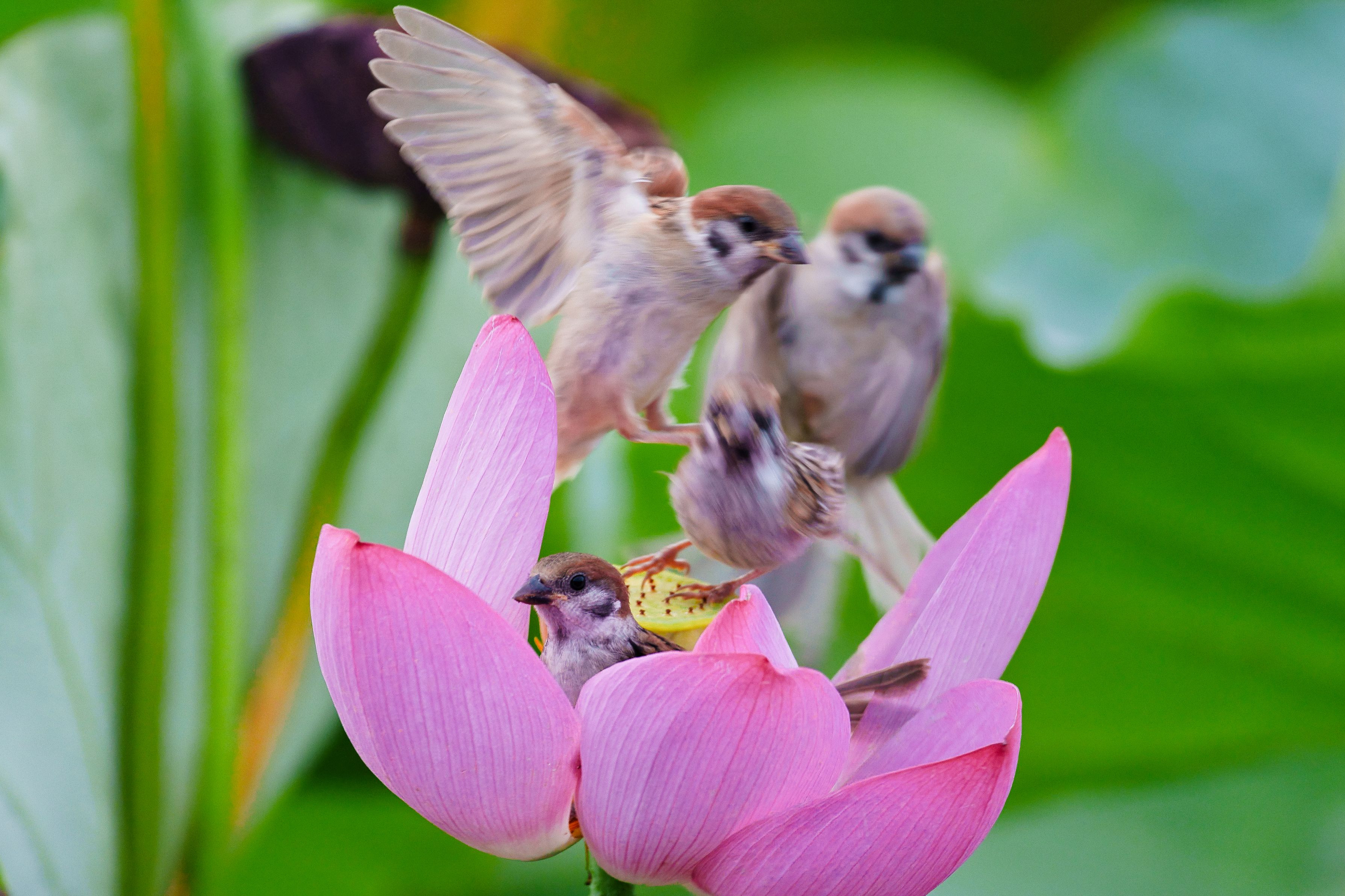 製品情報>My Sony>αcafe>ワチャワチャしていても動じないスズメ(bababa222さん)