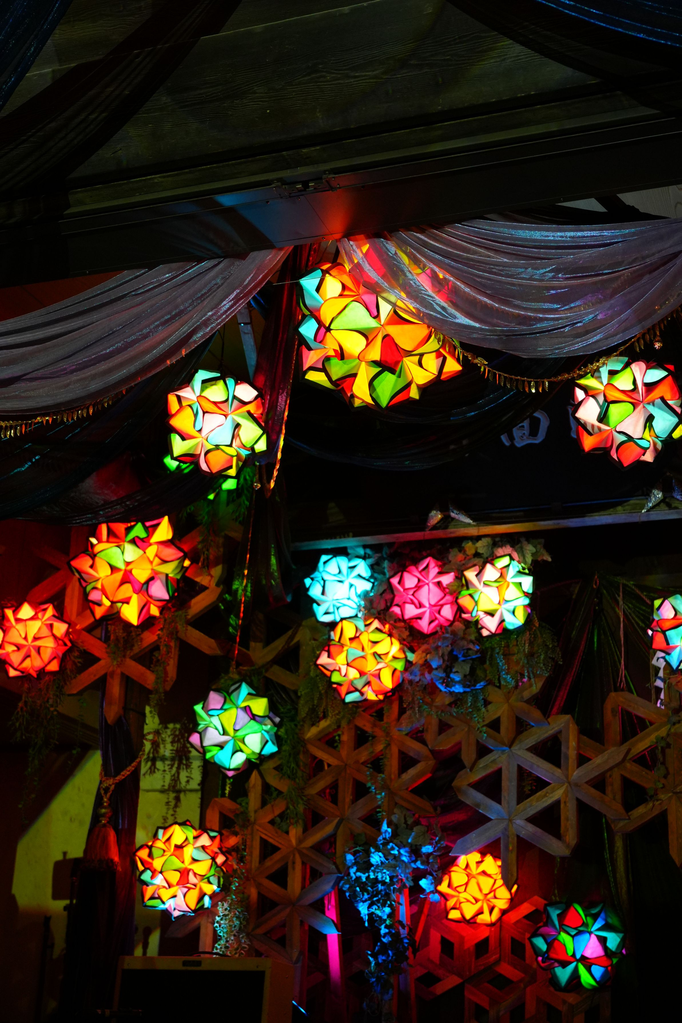 埼玉県所沢市 神明社にて 所澤神明宵の市で、音楽ステージとして飾り付けられた神楽殿 タイトルはチェッカーズの曲から