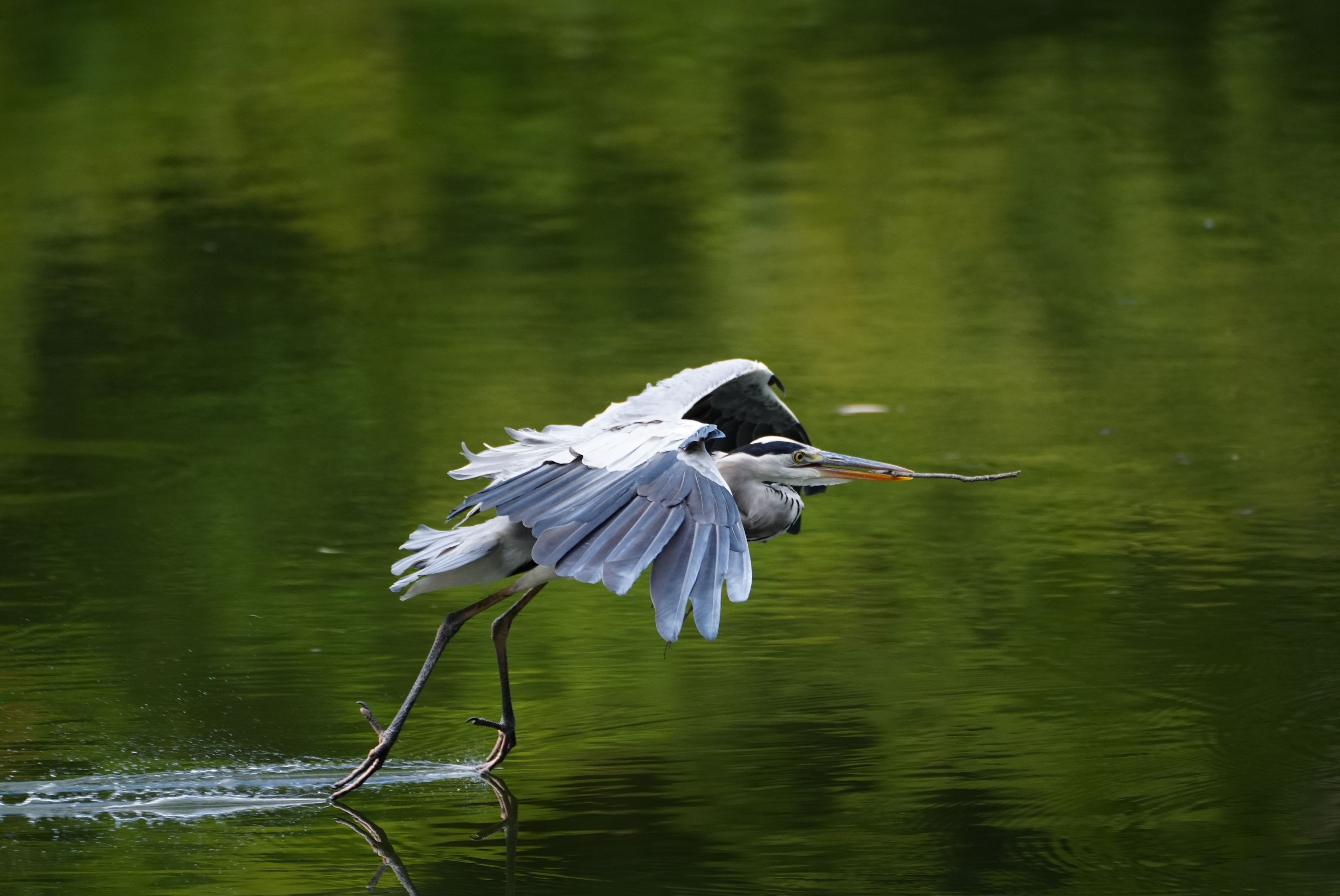 アオサギ なぜか枝くわえ