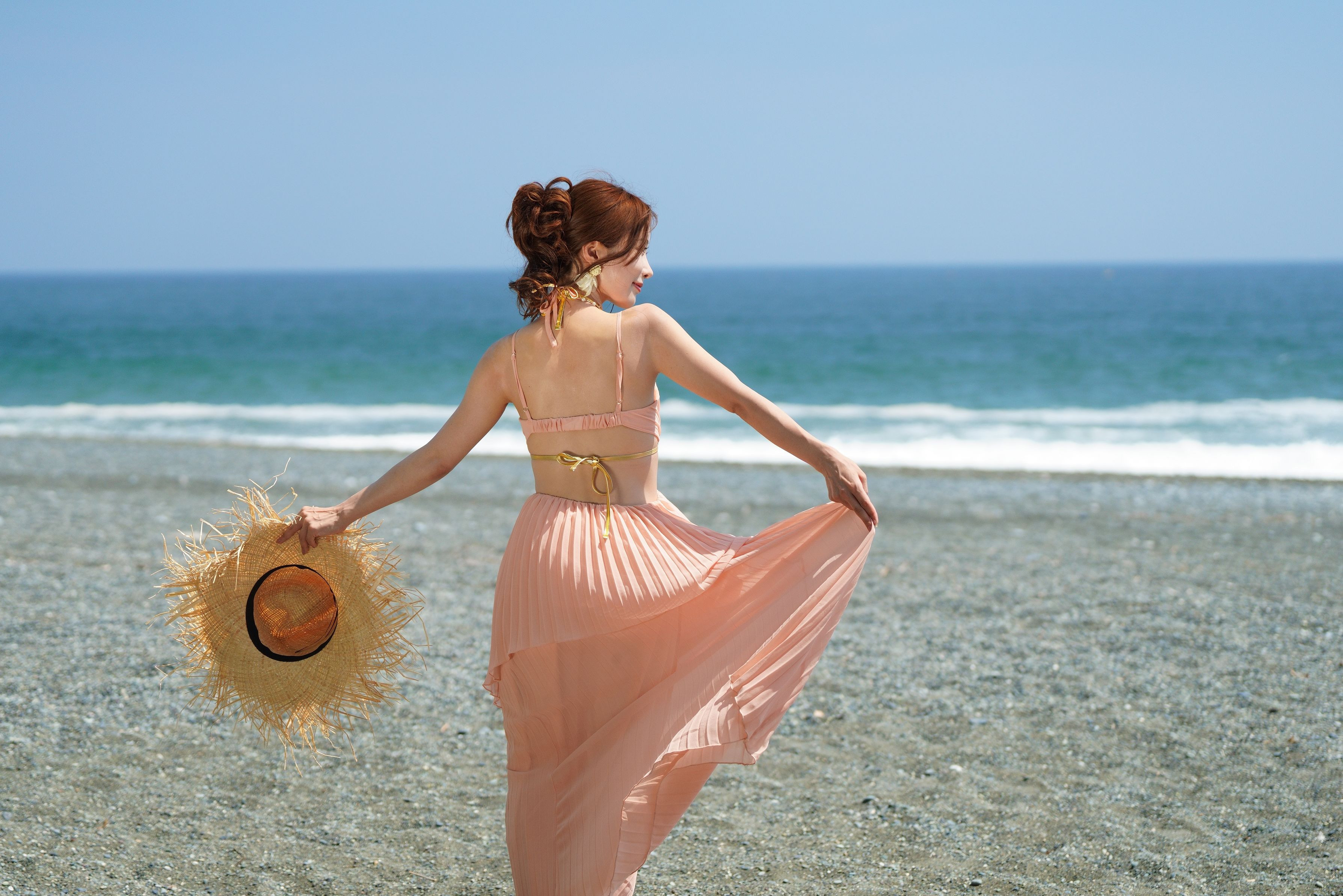 ビーチの気温は38度くらいいっていたと思います。過酷な条件下で行われた撮影会でしたが、端正なビジュアルをお持ちのこのモデルさんはエレガントキープでした。いつかもっと条件のいい日に撮らせていただきたいと思いました。(つづく) *当ギャラリー初登場のモデルさんです。 *5分おきに水の補給タイム、10分で日陰に移動。運営も細心の注意を払って行われていました。
