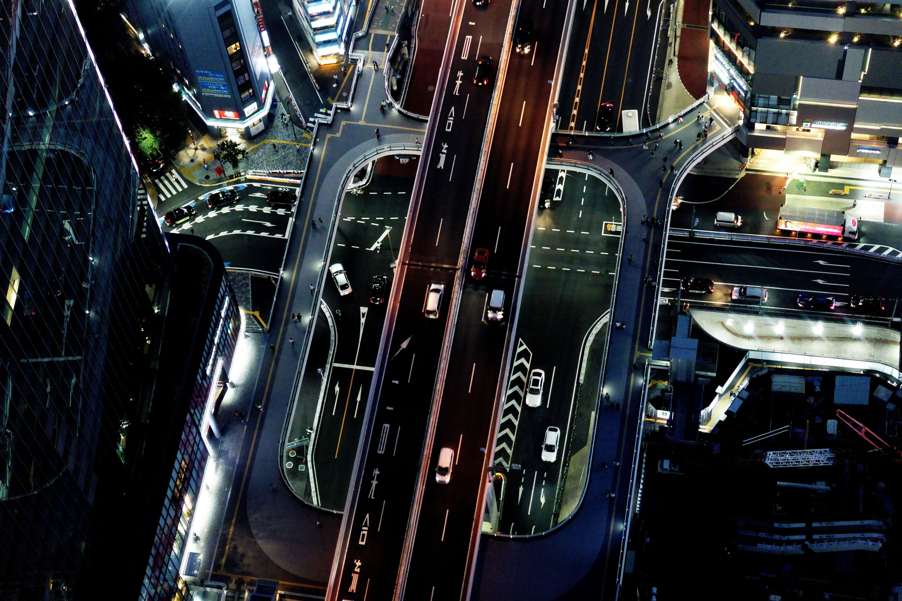 夜の首都高を見下ろす。
