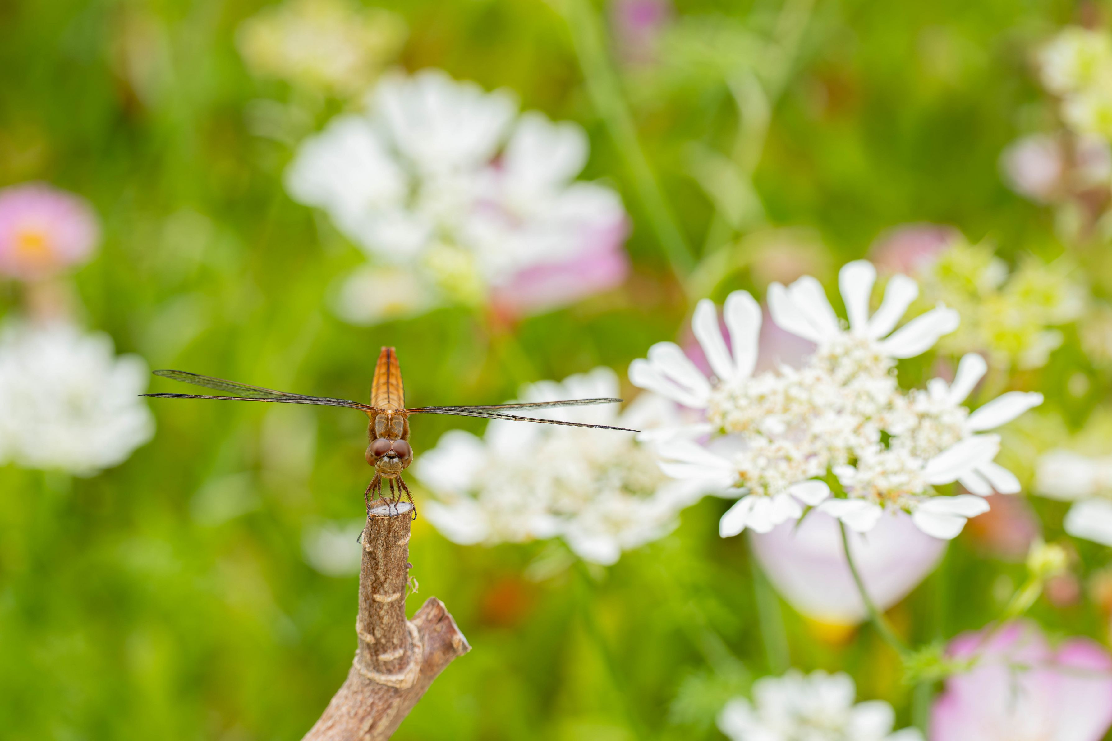ショウジョウトンボ女の子モデルさん。花畑で。
