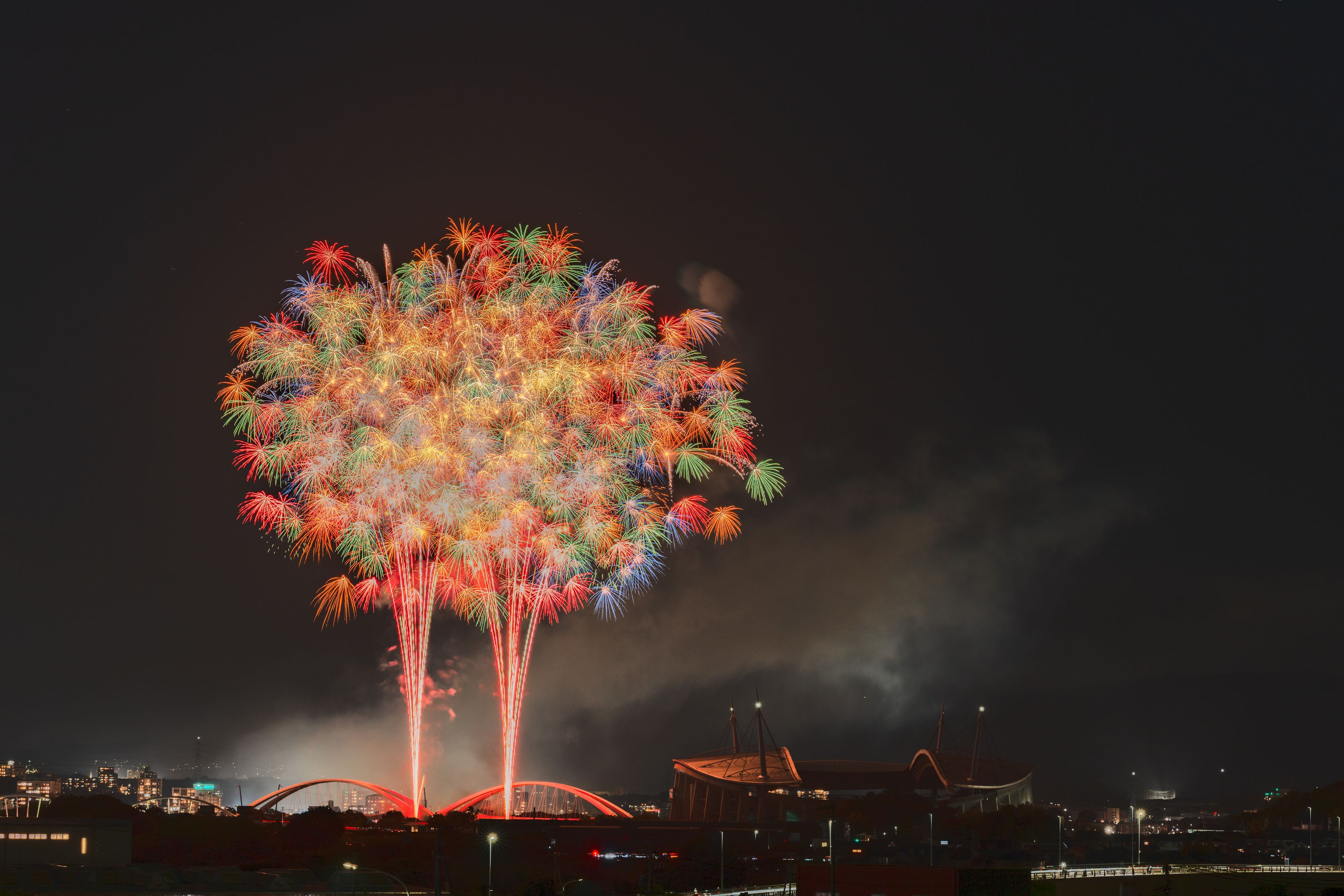 花火を見るときはみな顔を上げている。 落ち込んでいる人がいたら花火大会に連れて行けばいいじゃない。 夢も希望も不安も、何もかも打ち上げてしまえばいいじゃない。 そんなわくわくが花火にはあると思います。 うん、でも撮影のマナーは守ってね。