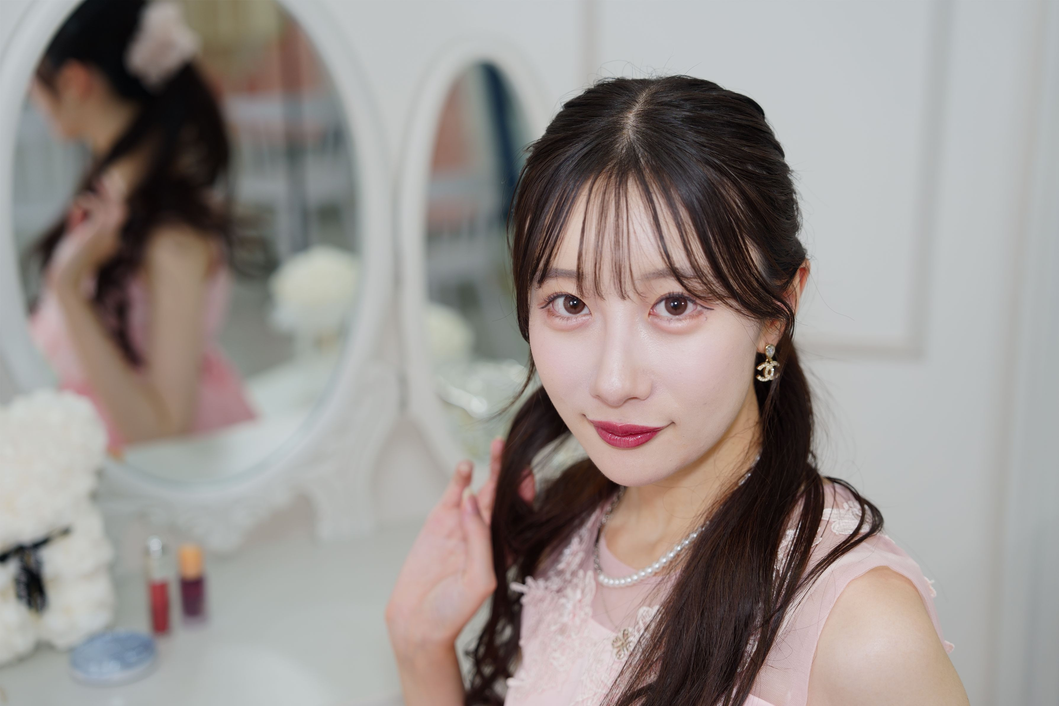 撮影スタジオでドレス姿で撮影 モデル:北原有紗さん