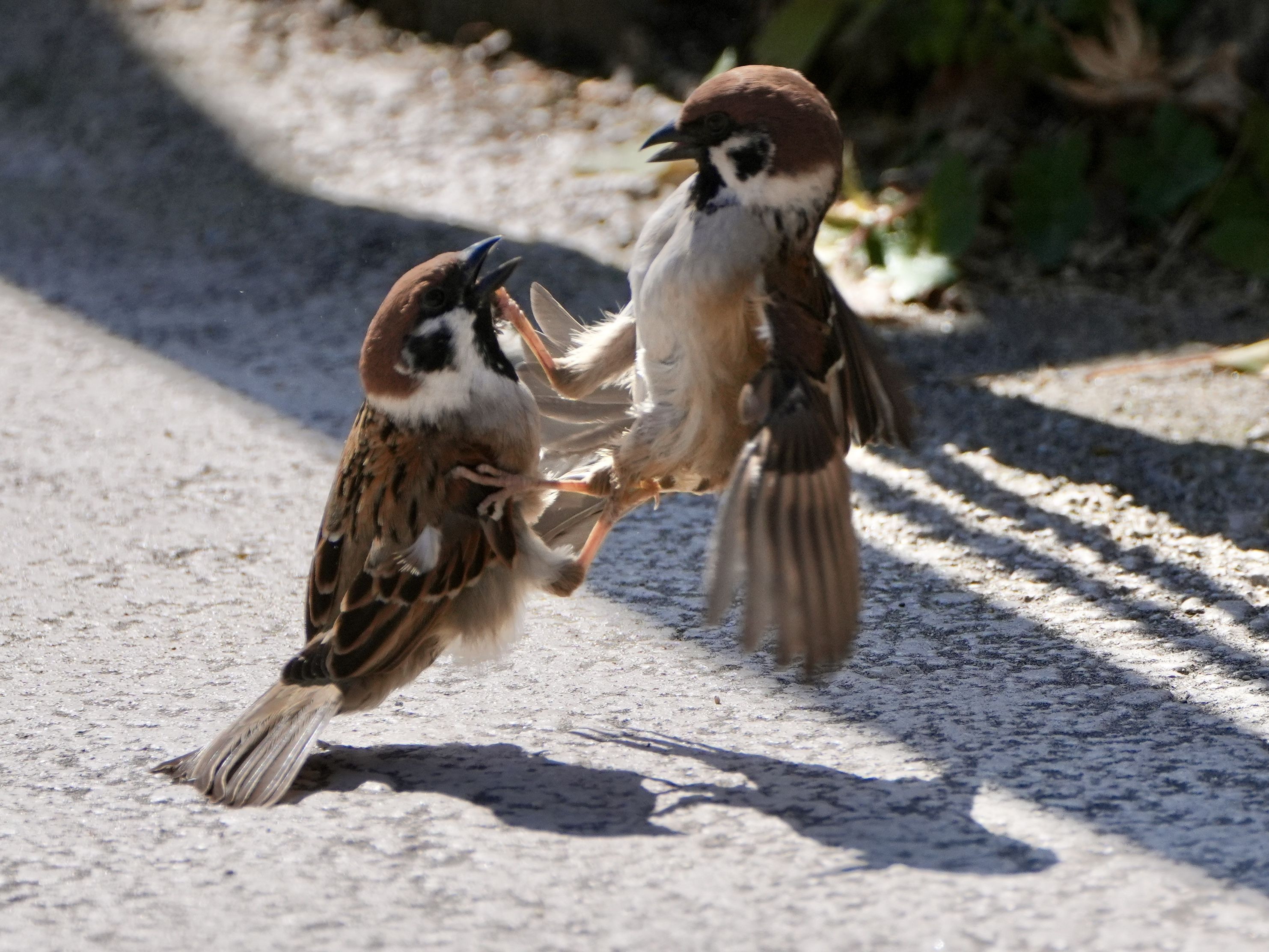 2羽のスズメが何やら争っていました。