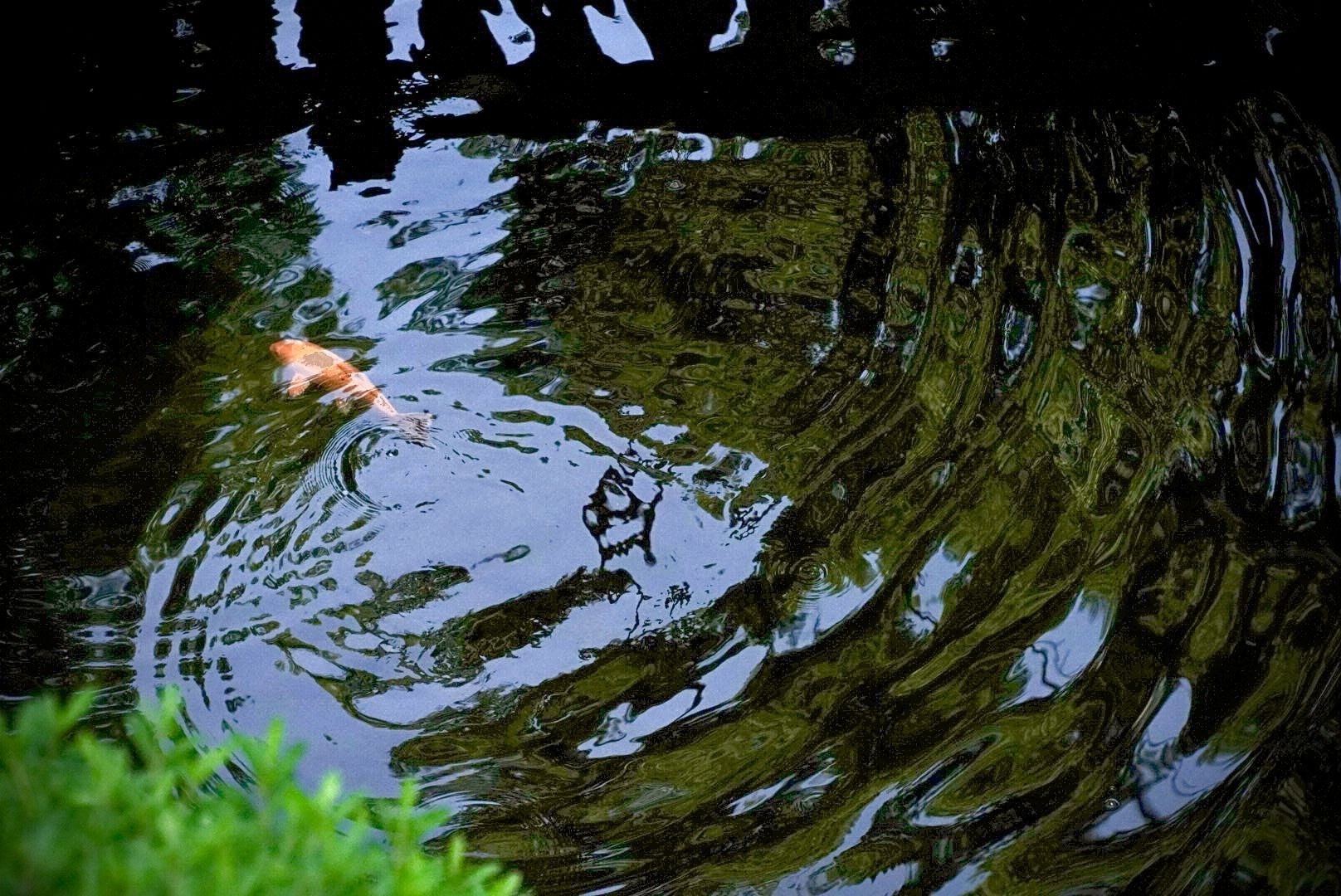 夏の青空と鯉、波紋が綺麗だと思いました。