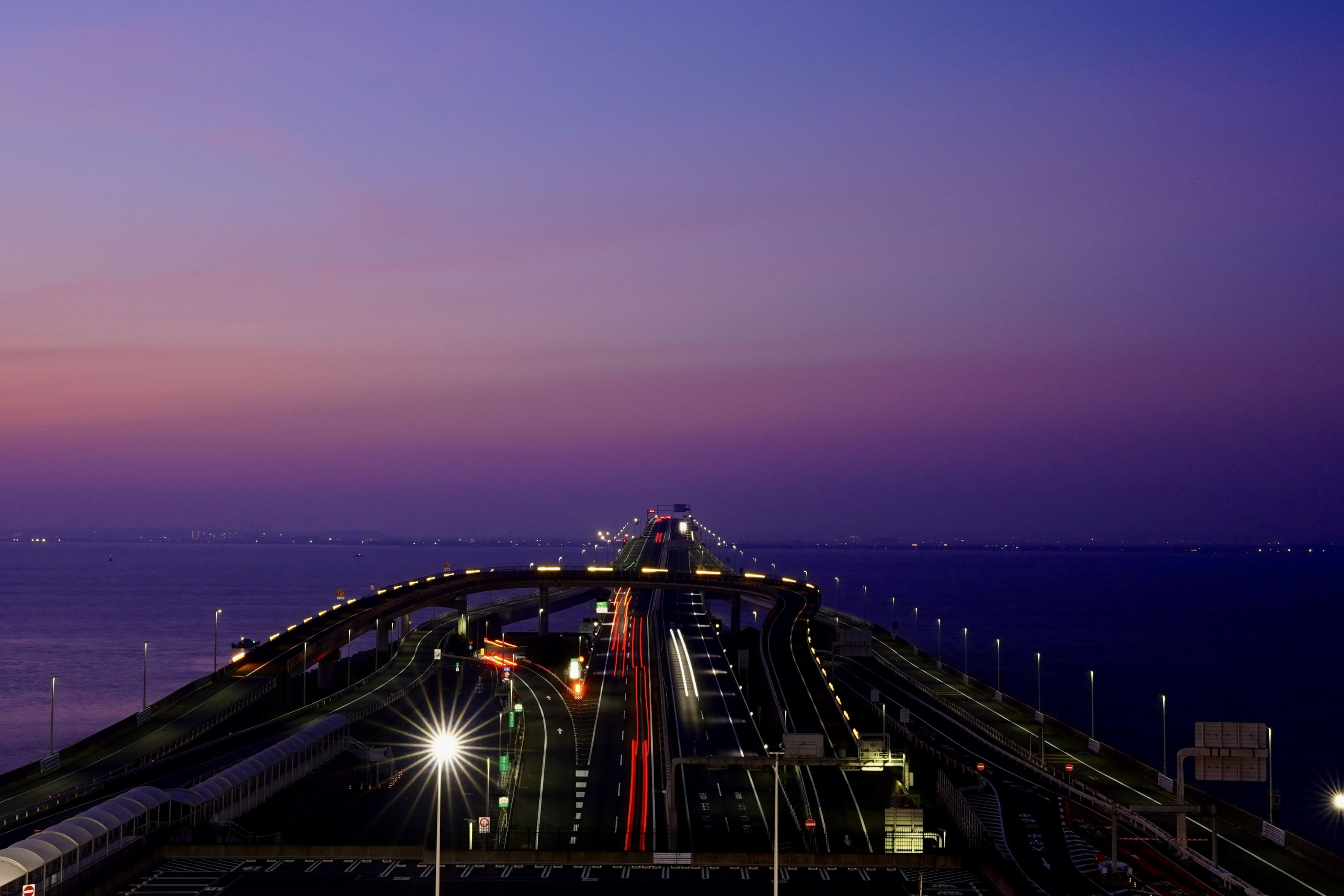 夜明け前の海ほたるパーキングエリアにて