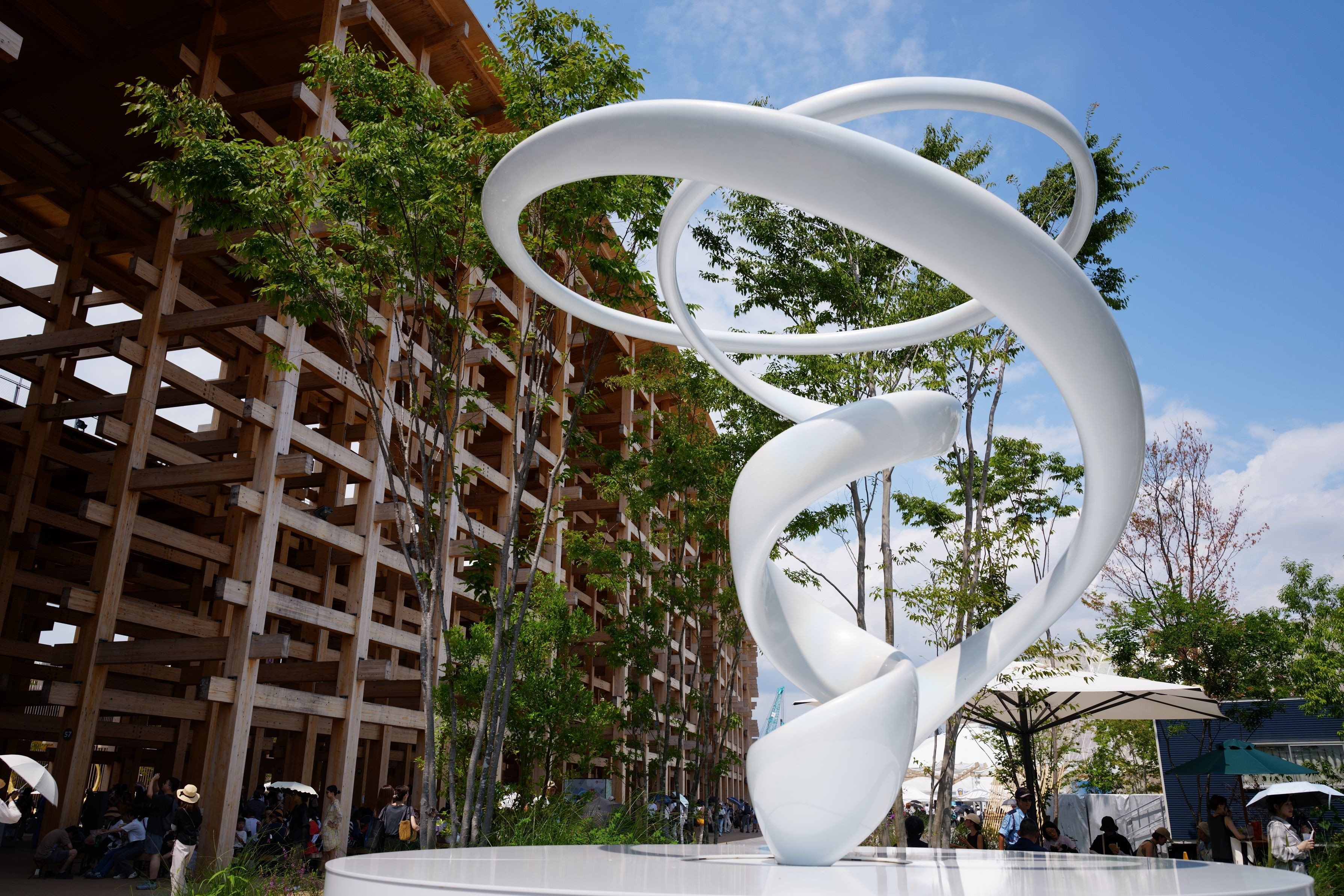 大阪・関西万博では会場のあちらこちらに21のパブリックアートが展示されていて、なかなか味わい深い 写真は森 万里子さんによる「Cycloid III」と名付けられた作品
