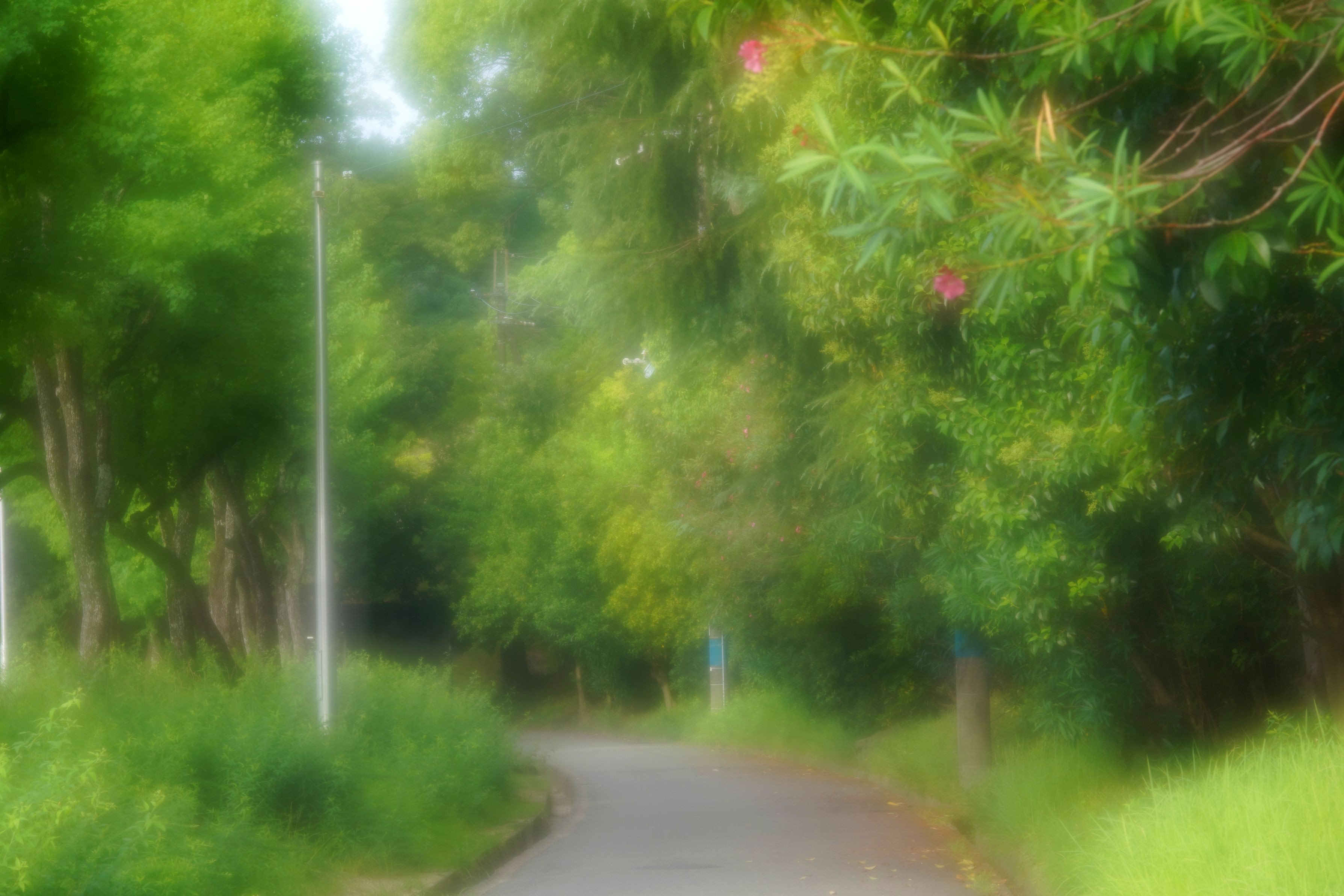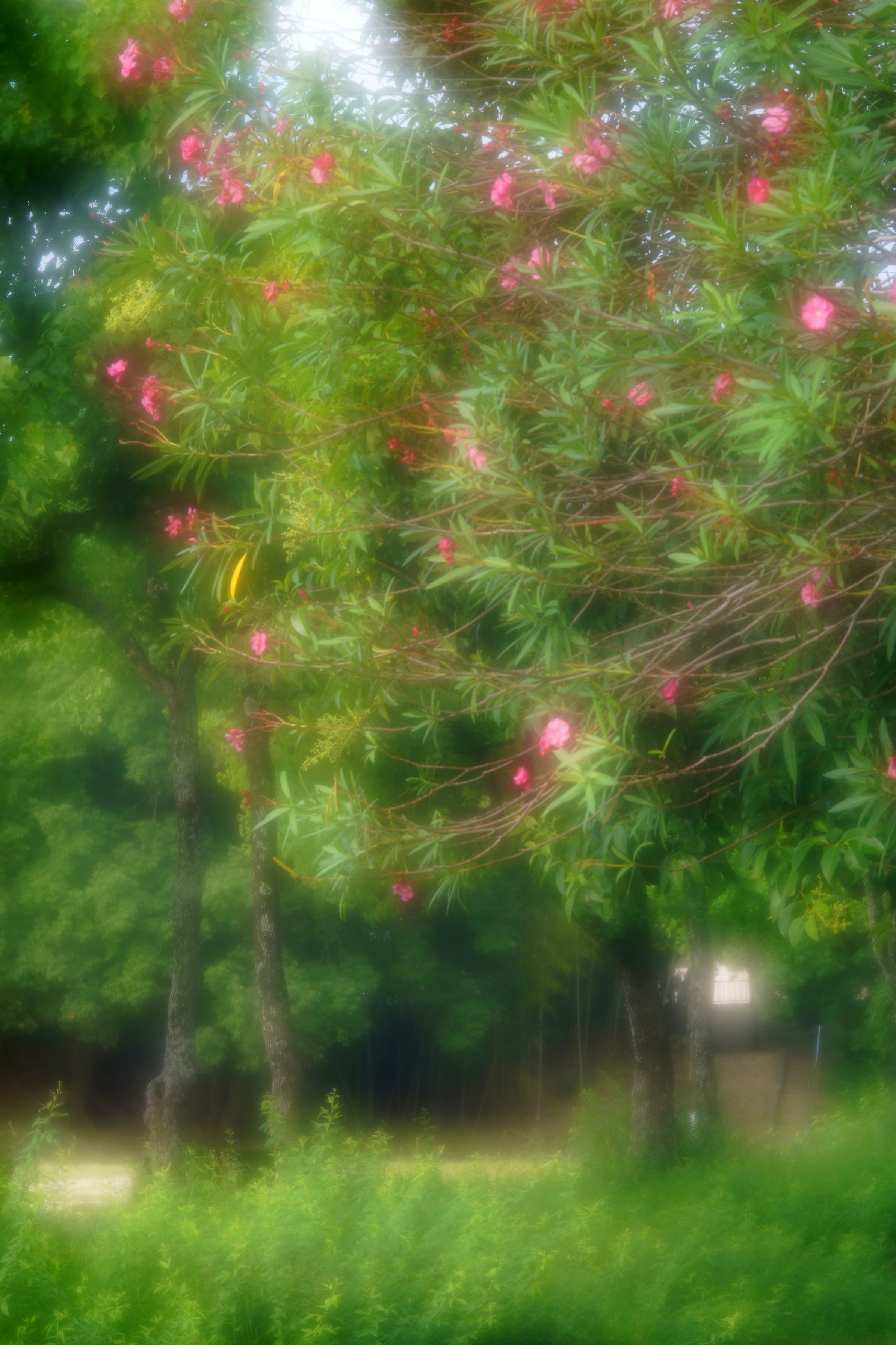 夾竹桃の咲く公園を早朝に散歩する。