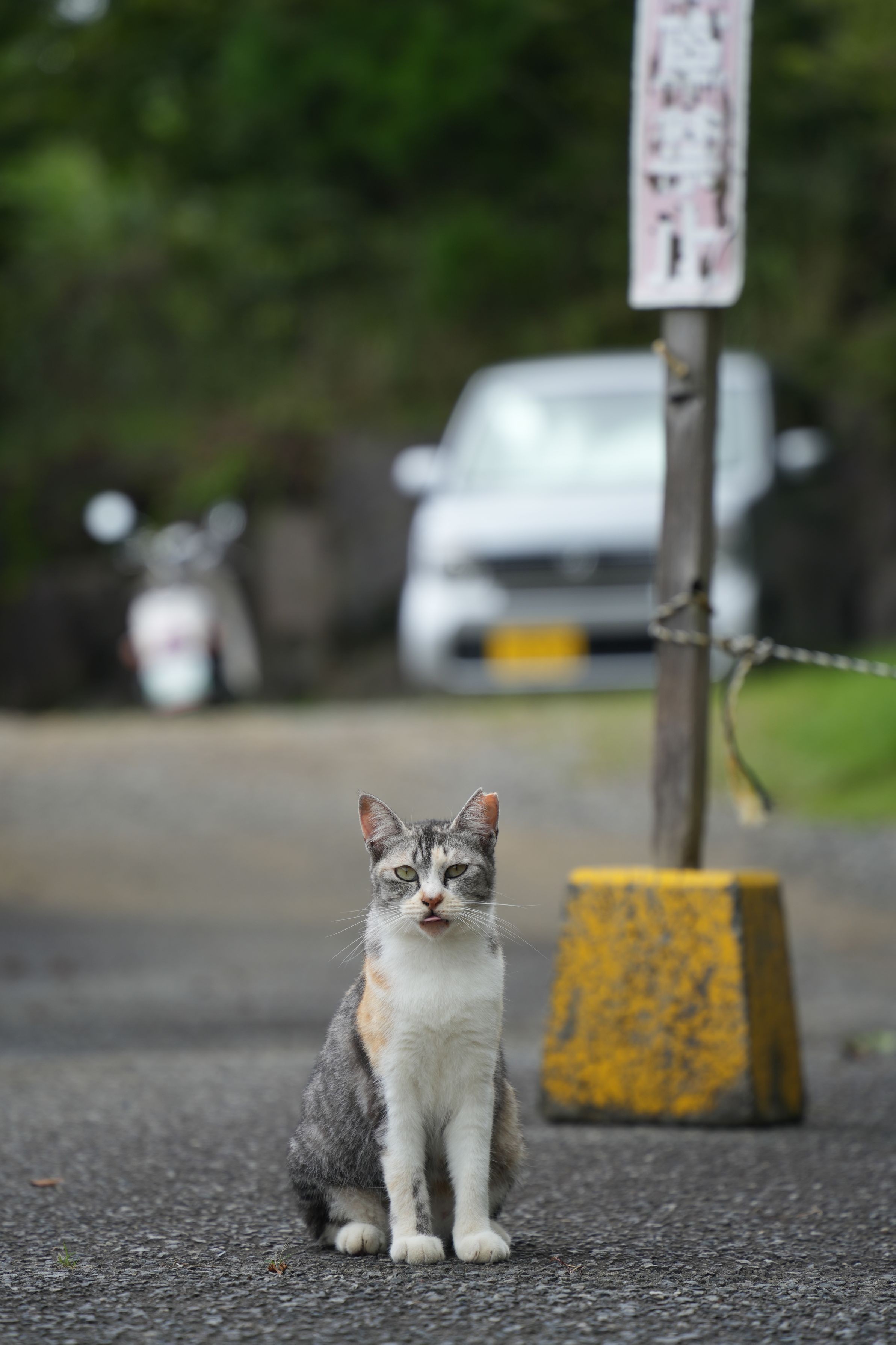 鹿児島県。霧島神宮の近くの道の駅の裏に住んでいる人に慣れた野良猫。甘えることを知っている生き物は強い