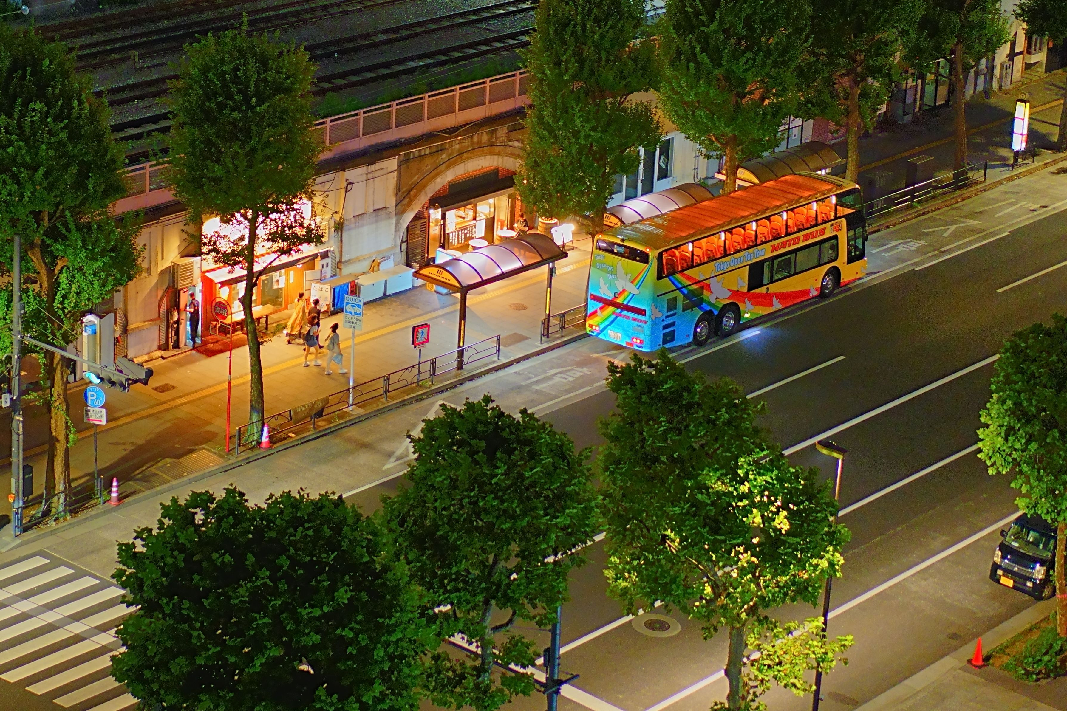 東京駅前のkitte屋上から、はとバス停留所を撮影。 東京駅前なのに雰囲気が落ち着いていて良い感じでした。