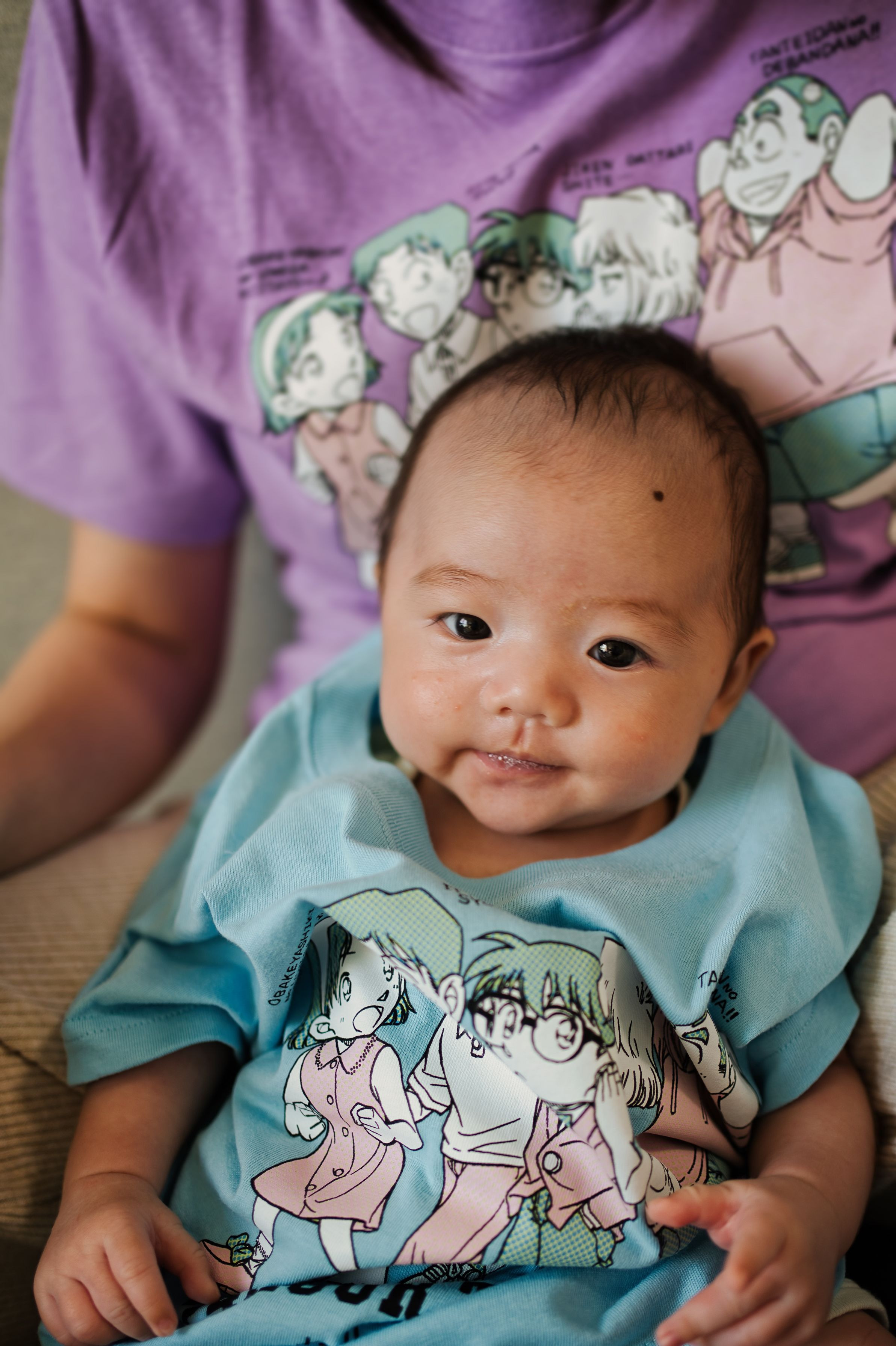 母の腕の中での無事退院