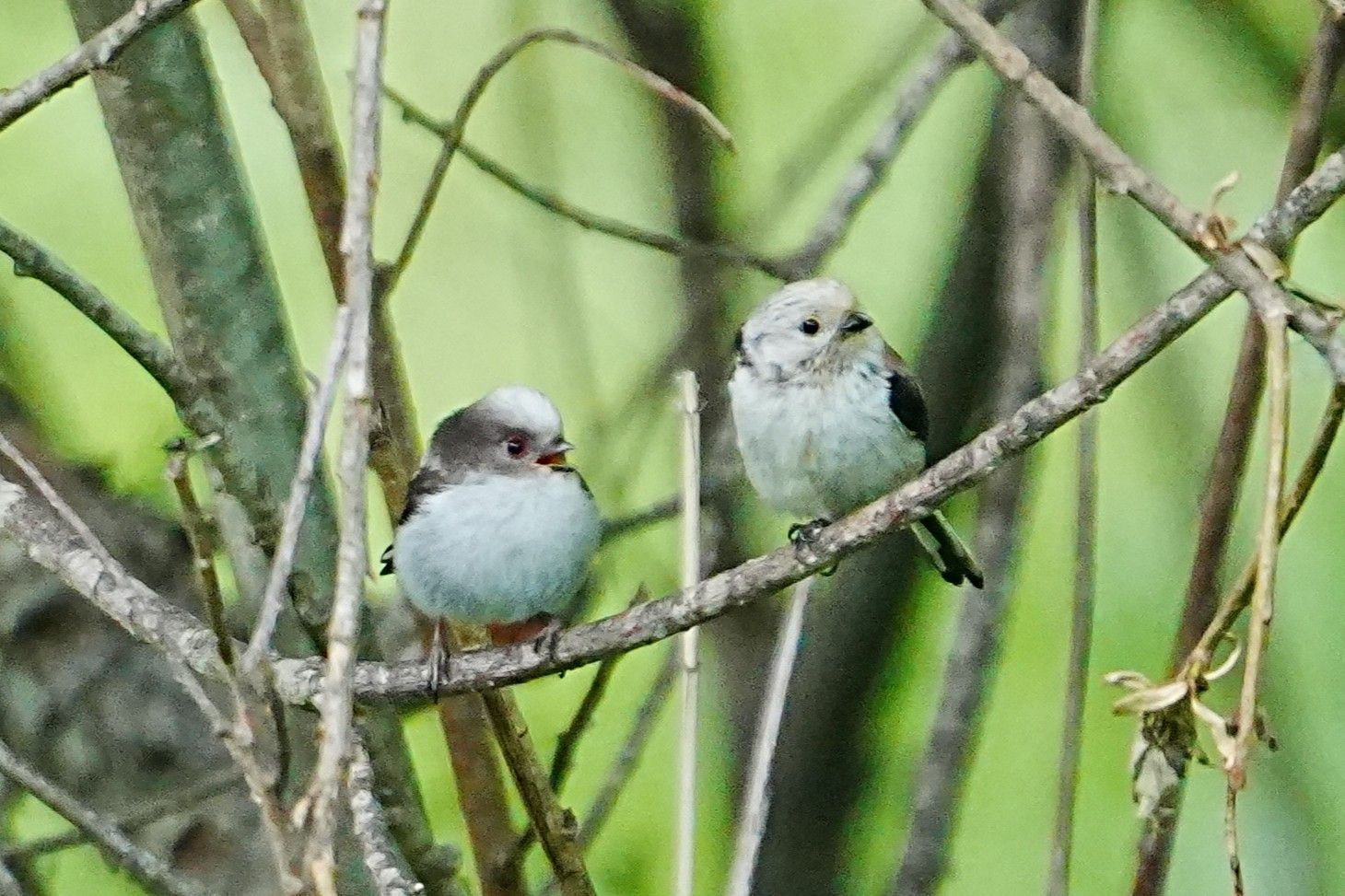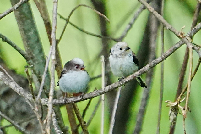 シマエナガのヒナと親です。 2枚目は、子供と親が楽しく話している感じかな・・