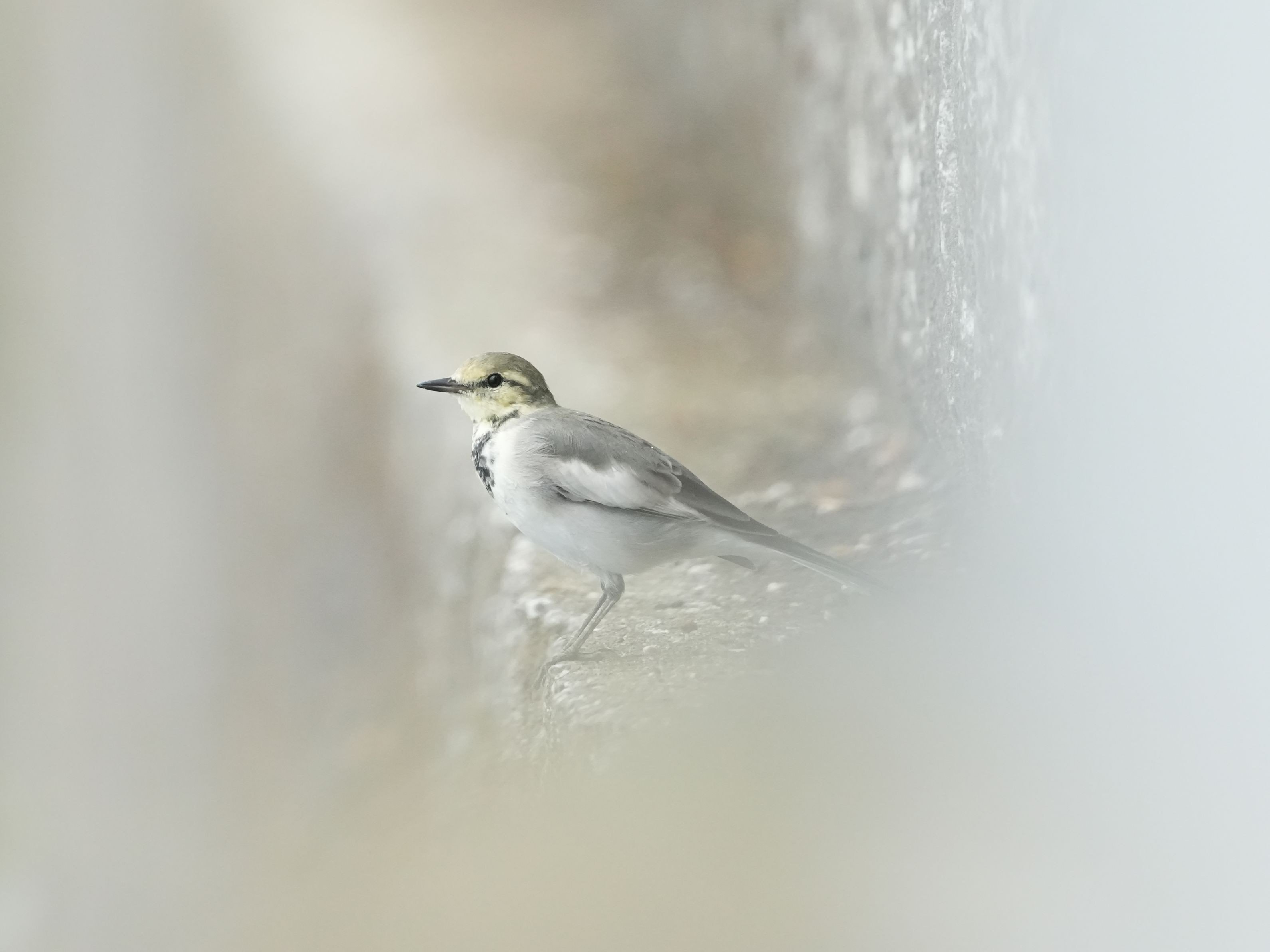 堰の脇にある、柵の間からコッソリ でも、目線はしっかり? #ハクセキレイ#