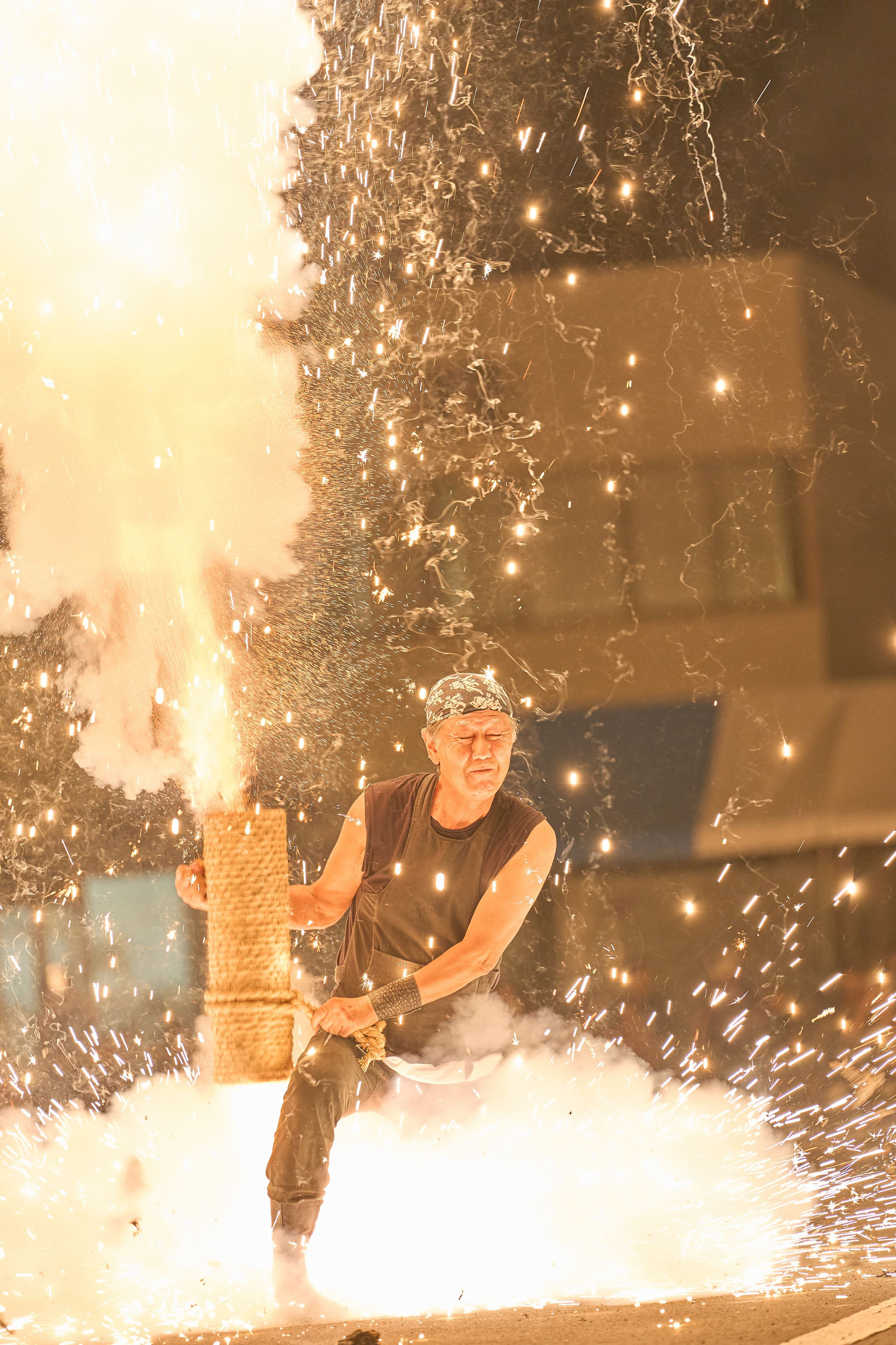 間近で見る手筒花火は大迫力でハネの瞬間は体に響きます。 ※RAW現像、ノートリミング