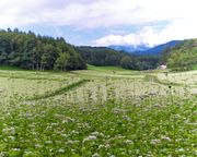 台風が近づく前に…と朝早く高原を訪れました。青空は見えましたが、残念ながら北アルプスは雲の中でした…。蕎麦の花は満開見頃でした!