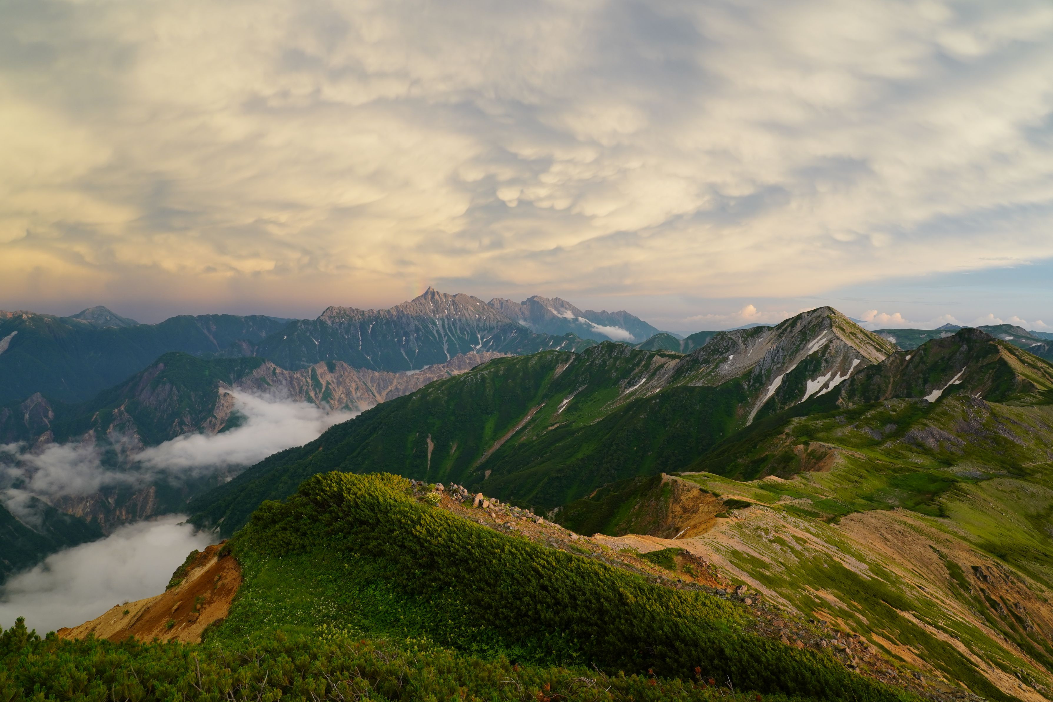 製品情報>My Sony>αcafe>北アルプス水晶岳から望む鷲羽岳、槍ヶ岳・穂高連峰の黄昏(自由人さん)