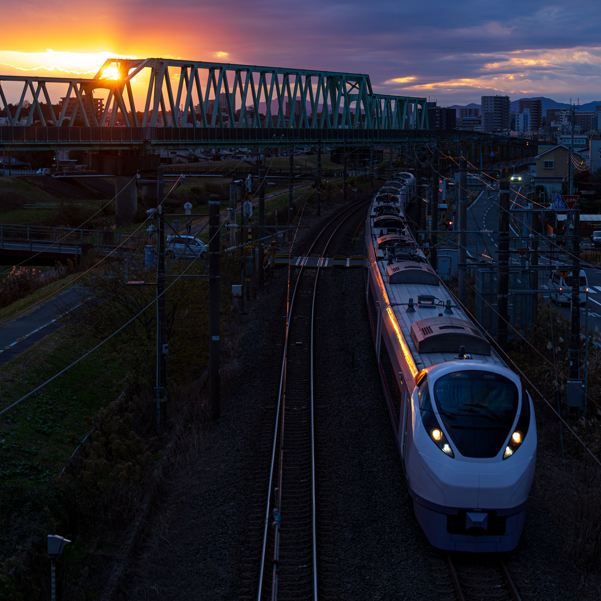 水戸駅を出発して福島のいわきへ向かう常磐線の特急・ひたち。 夕日に輝くボディが美しいなと思いました。 背景の鉄橋は鹿島臨海鉄道です。 昨年の暮れに撮った写真の蔵出しです。 熱中症が怖くて、しばらく撮影に出ていませんでした。 ※月曜の1時頃から皆既月食を撮りに行く予定です。 晴れてくれると良いなぁ。。