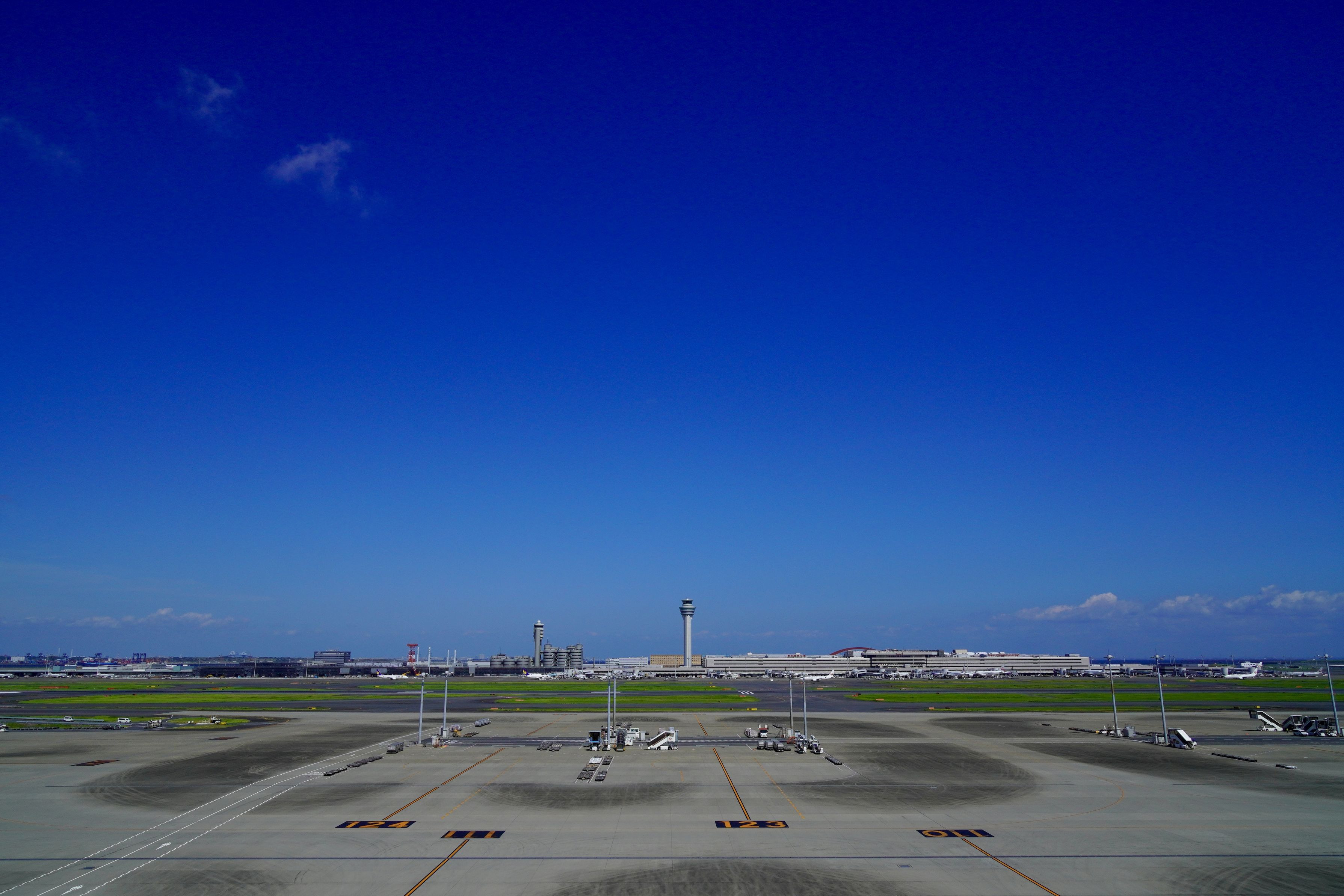 さっきまで目の前にいた、たくさんの飛行機がいなくなり、 がらんとした空間がとても広々としていました。