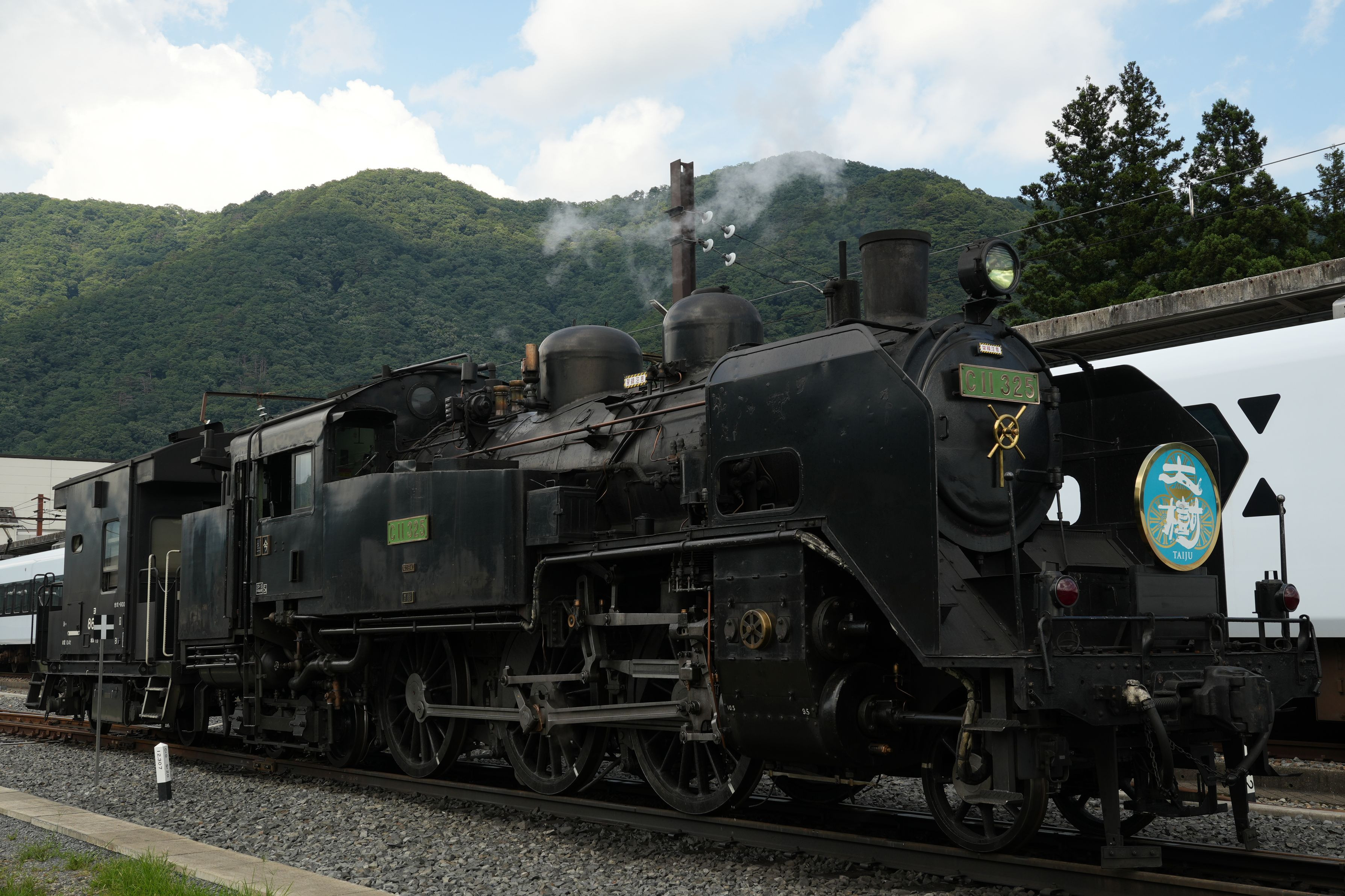 栃木県日光市鬼怒川温泉駅にて SL大樹の向こうにスペーシアX