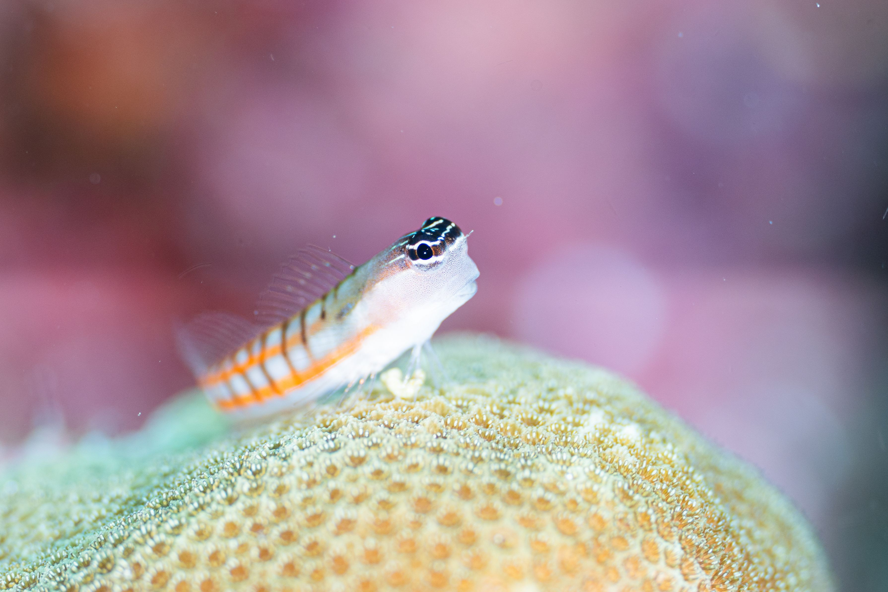 フィリピンセブ島のリロアンでのスキューバーダイビングを楽しんてきました。 水中でガイドががっつり横についてアドバイスいただきながら撮った渾身の一枚です。 背景のピンクと玉ボケで被写体のフィリピンブレイニーも乙女な感じに仕上がりました。