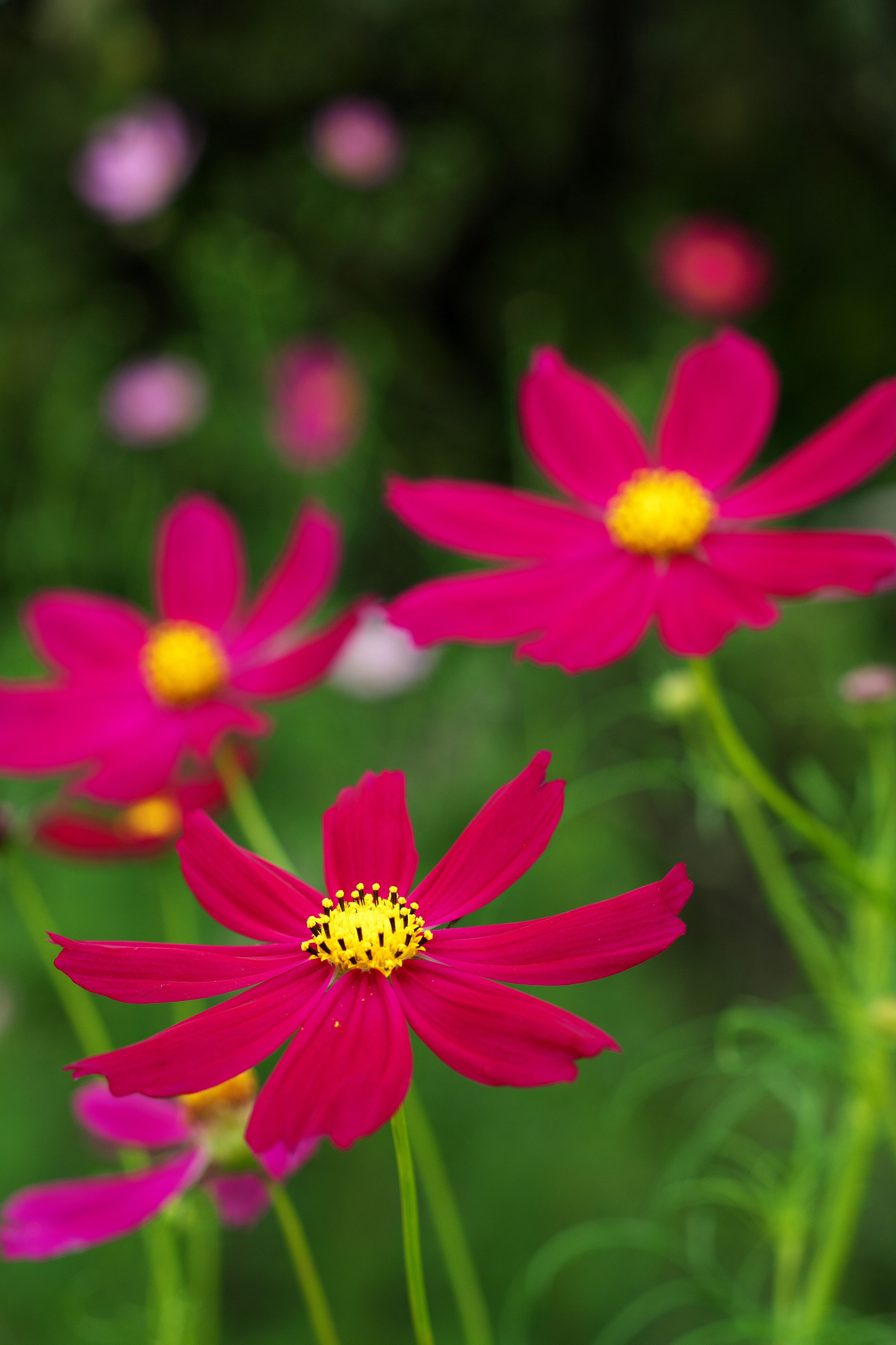 赤いコスモスの花言葉をネットで検索して調べたら、 「愛情」,「情熱」,「調和」などが見つかりました。 そこでタイトルを決めてみました。