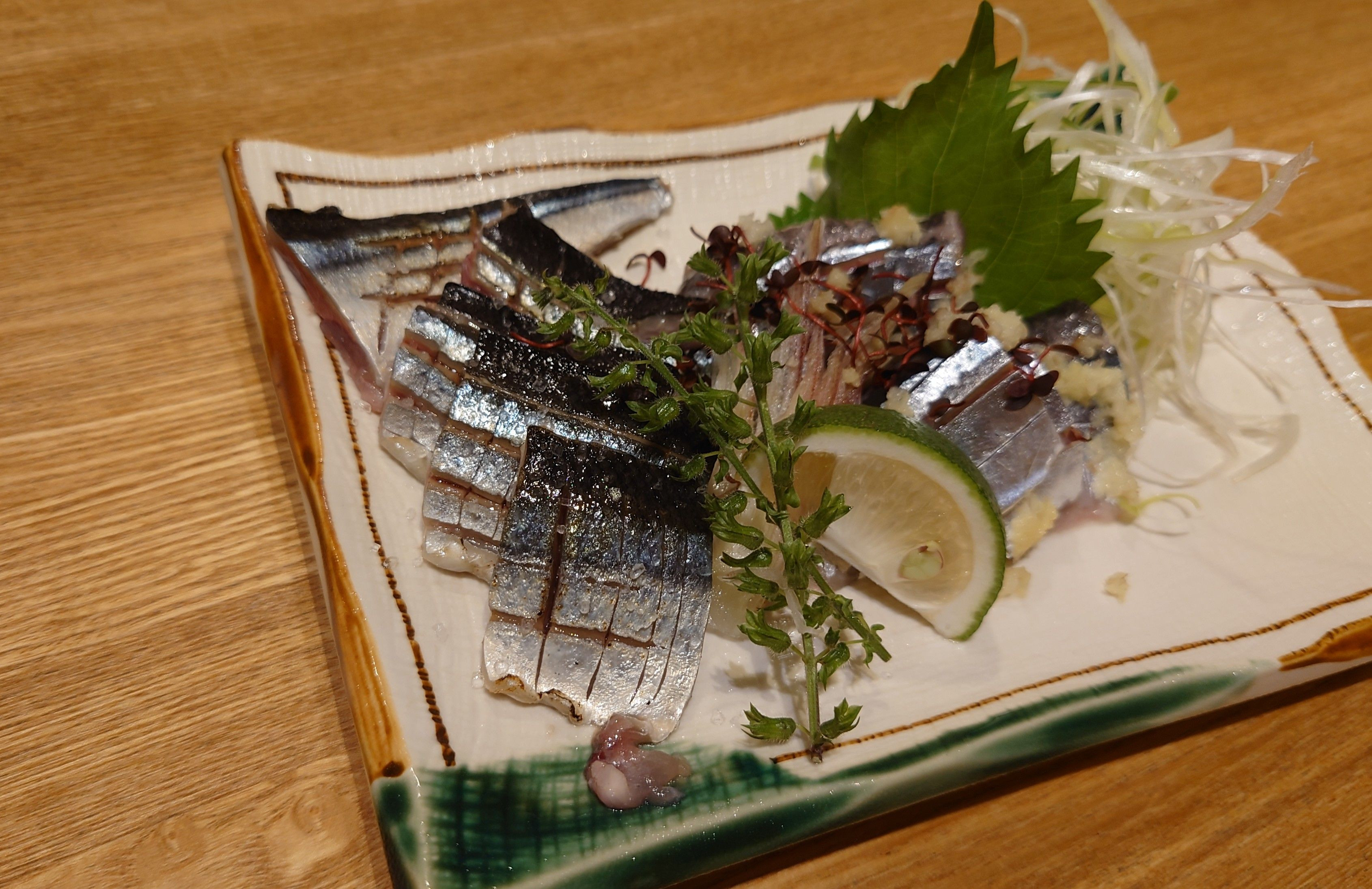 サンマの炙りは塩を振って… 刺身は、スダチをかけて、生姜やミョウガ、ネギなどの薬味と共に… 旬を味わう贅沢な一品です🙂