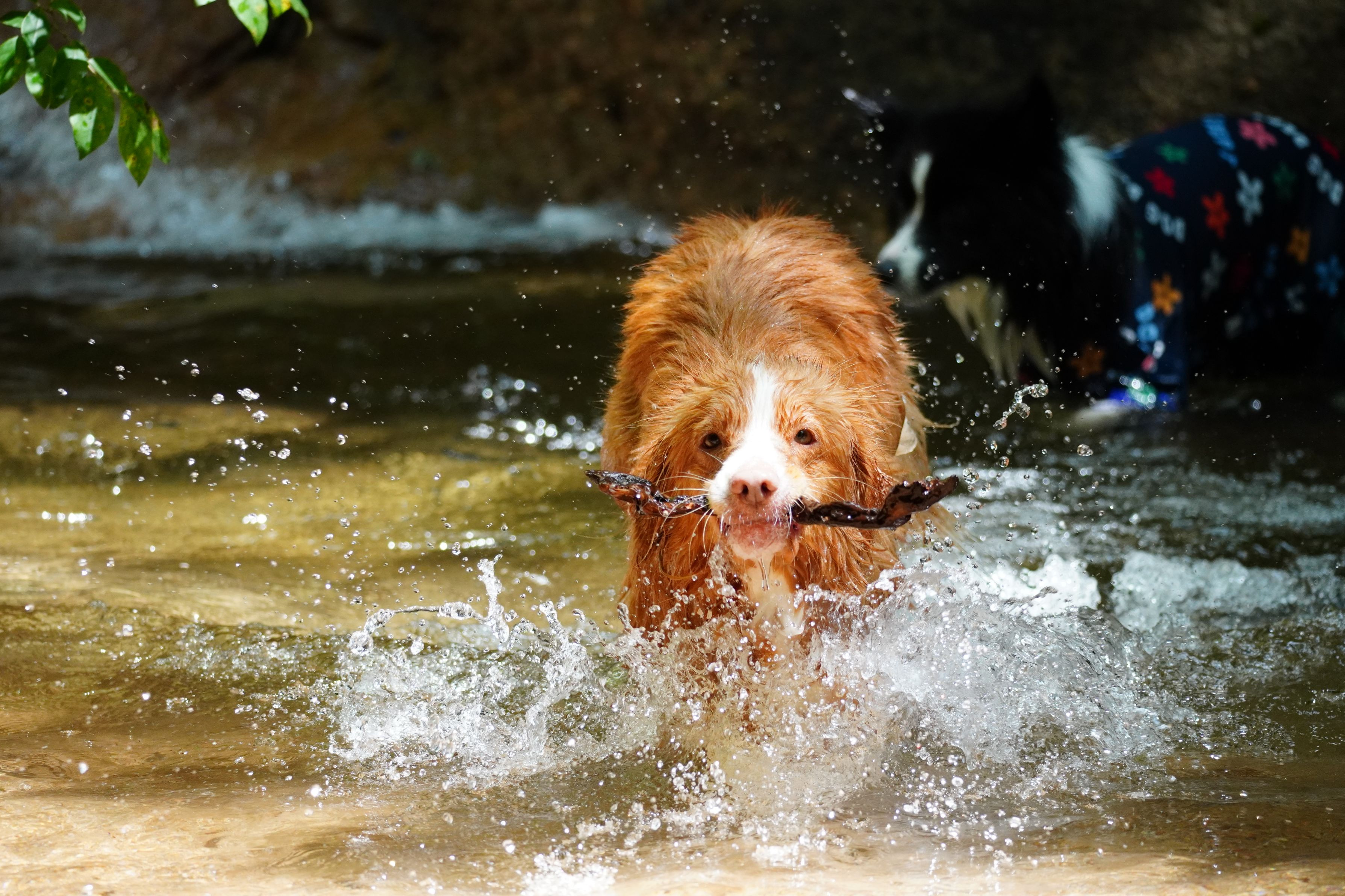 木の枝をおもちゃに走り回ってます。