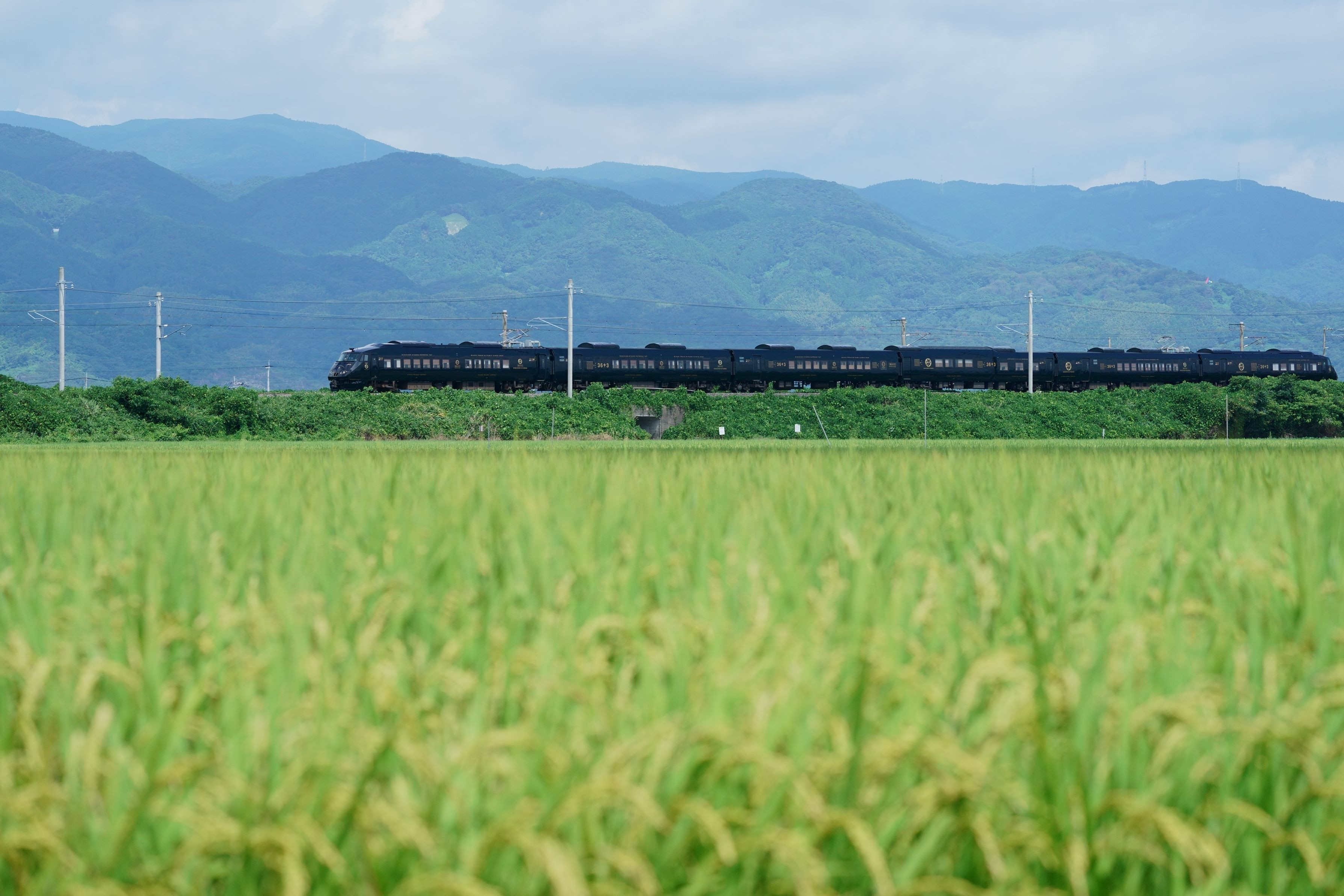 長閑な佐賀平野を佐世保に向けて走るJR九州の「36+3」です。お米も、もうすぐ収穫ですね。