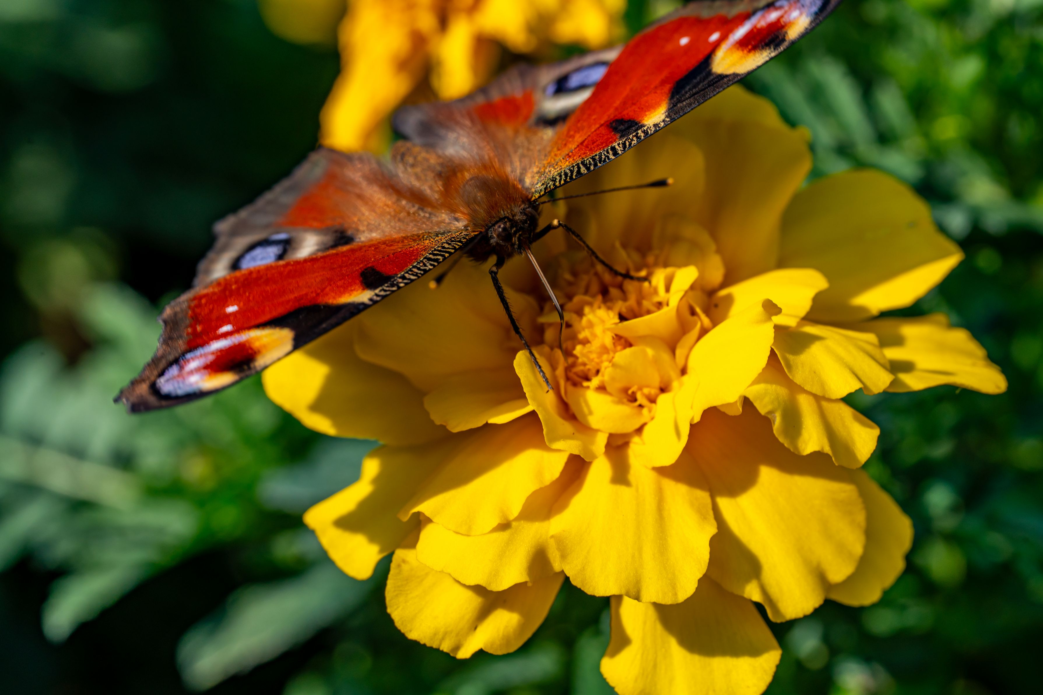 クジャクチョウとマリーゴールドです