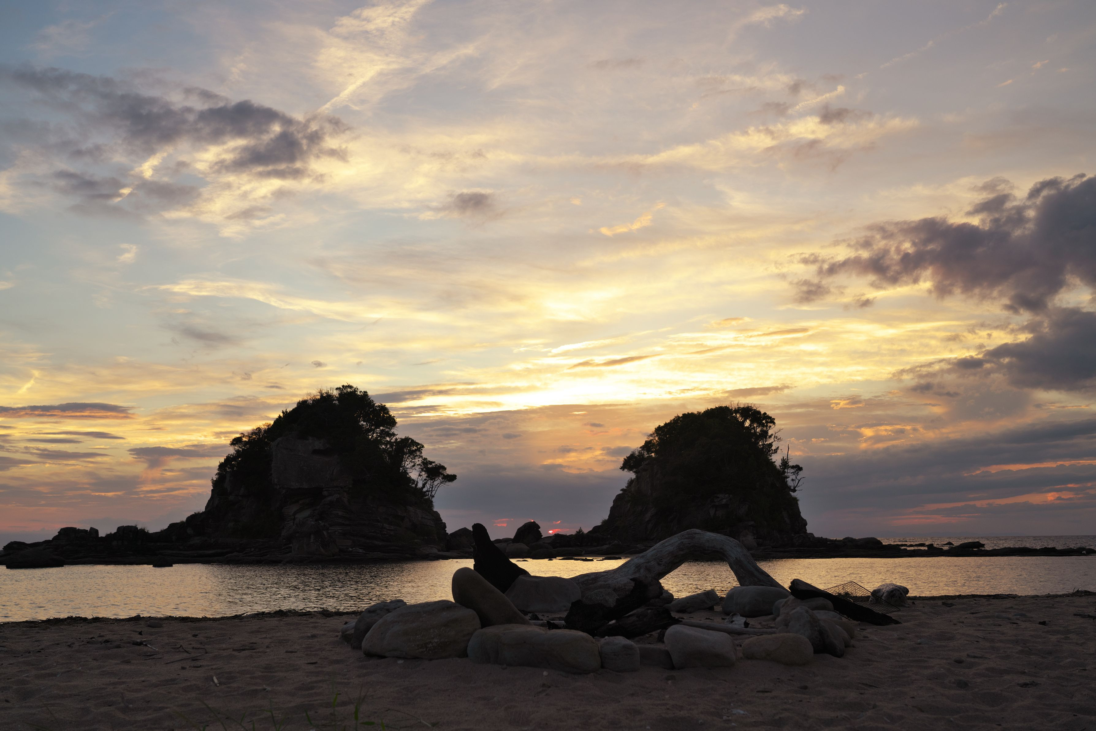 砂浜の焚き火の名残です。夕方は少し秋を感じられます。