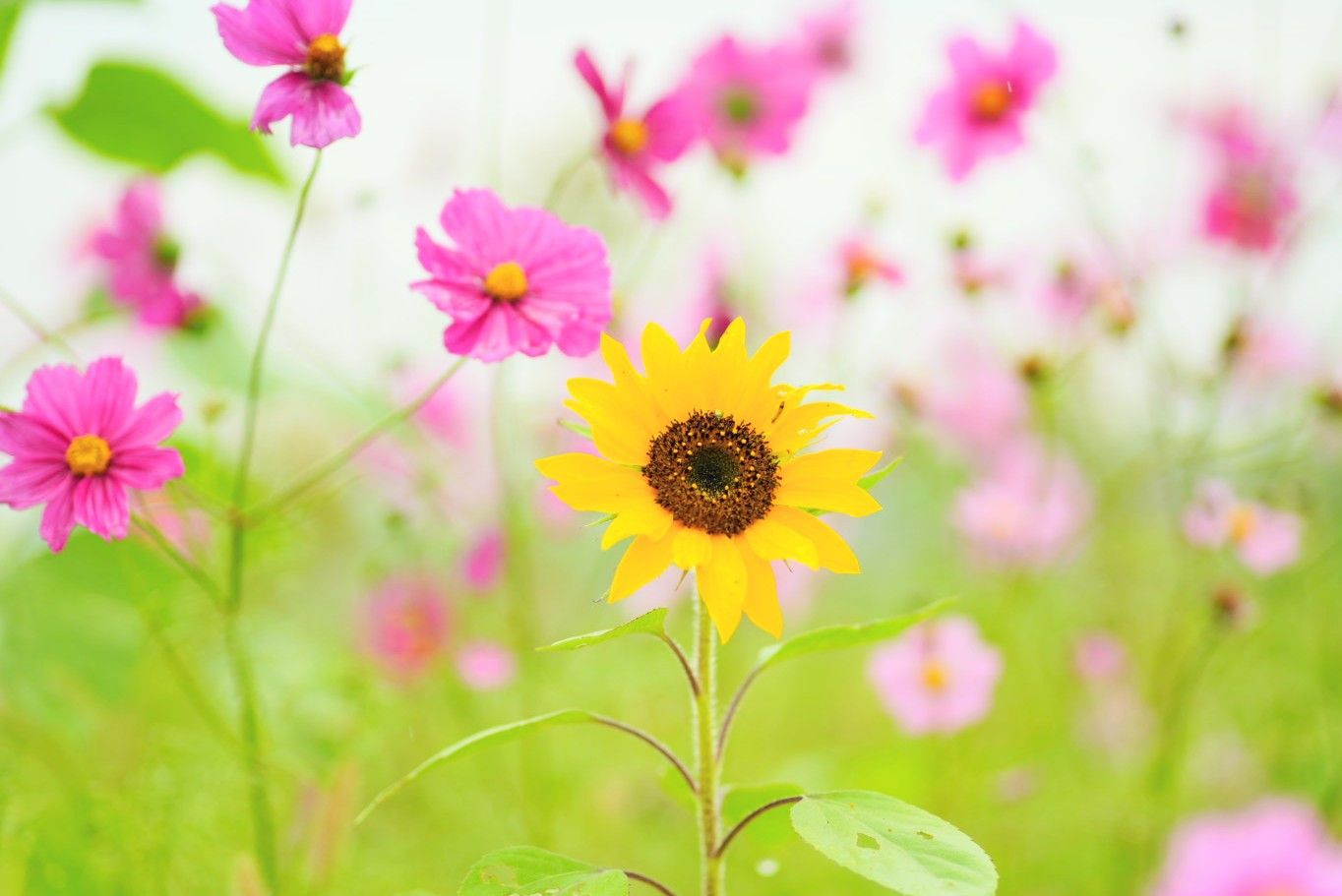 ヒマワリが満開のコスモス達に「私はまだ咲いてるの」と訴えてるかのように咲いてました。