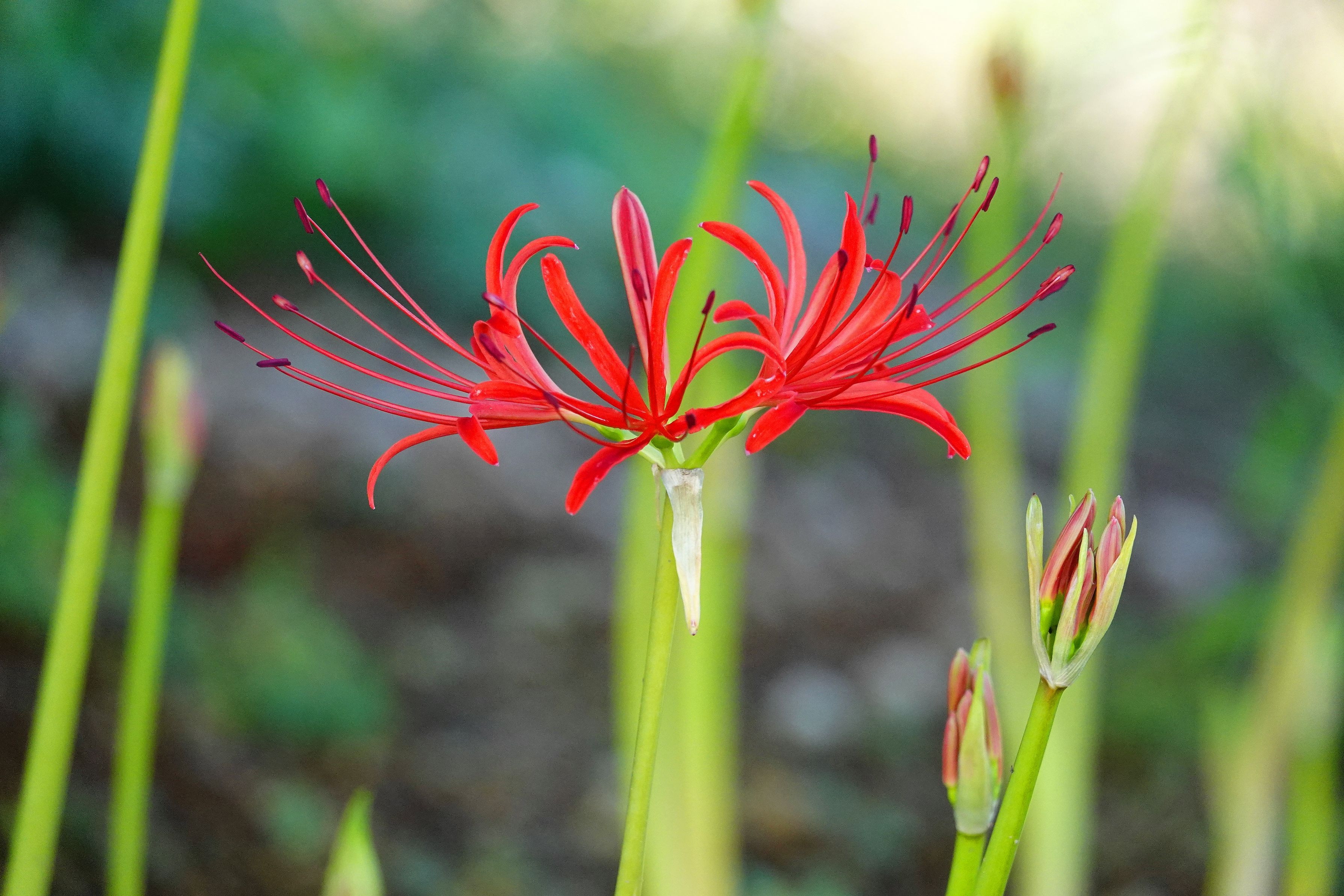 ヒガンバナ科、ヒガンバナ属、多年草(球根植物)、*有毒植物* *別名:曼殊沙華 *七北田公園にて