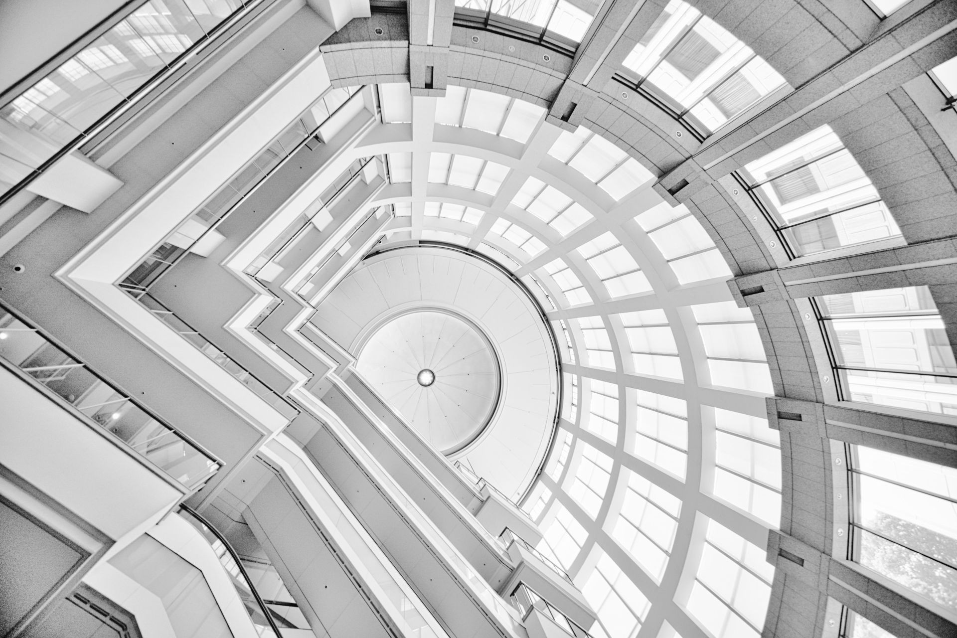 ガーデンコート・アトリウムチャペルから31mの吹抜けを 見上げてモノクロ・ハイキーで表現しました。 #東京都#