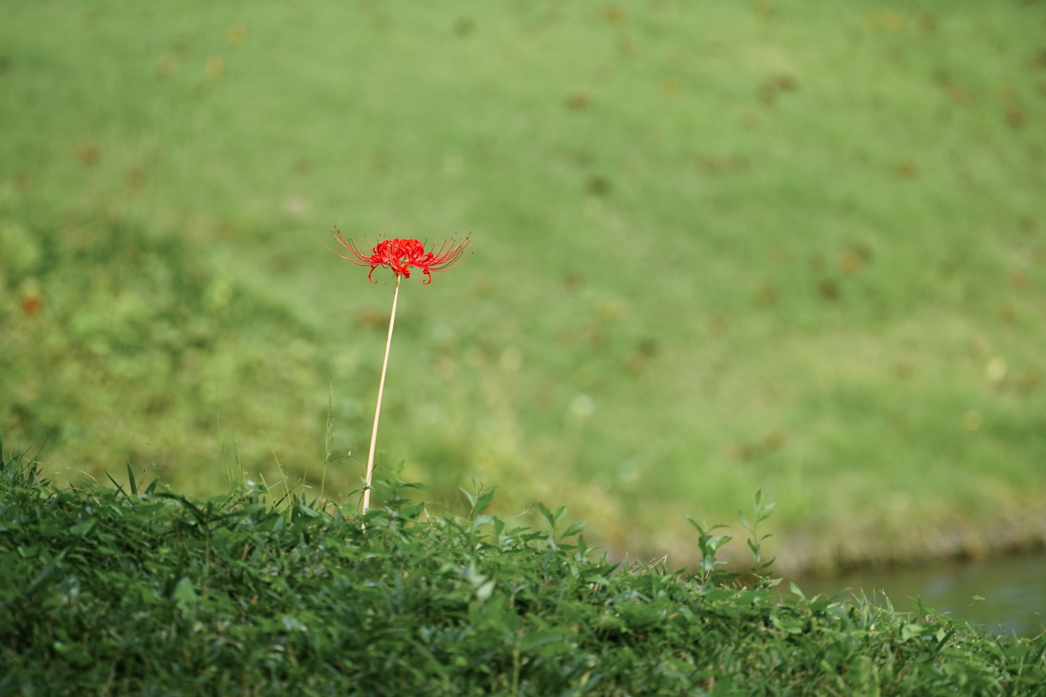 暑さのためか、彼岸花の開花は遅れ気味。 小石川後楽園では何本か咲き始めていました。